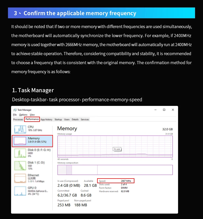 Si la placa madre y la CPU no soportan el cambio estándar, la memoria sólo puede trabajar at2666MHz/2400MHz ..