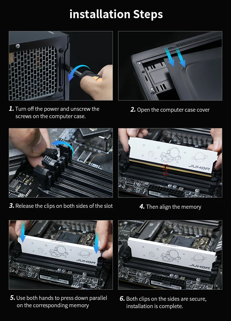 1-Chips JUHOR Utiliza partículas rigurosamente probadas, compatibles con una amplia gama de ordenadores, también compatibles con las plataformas Intel y AMD. (Por Ejemplo: Samsung, Hynix, Micron, Magnesio, Asia del Sur Yisheng, Elpida), Enviar basado en el azar.
