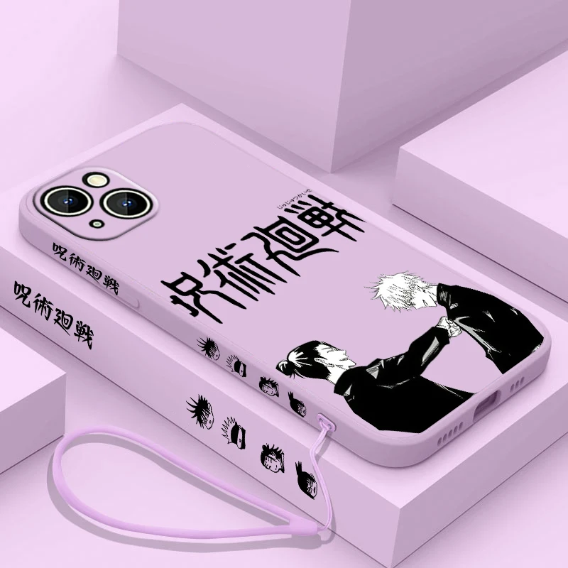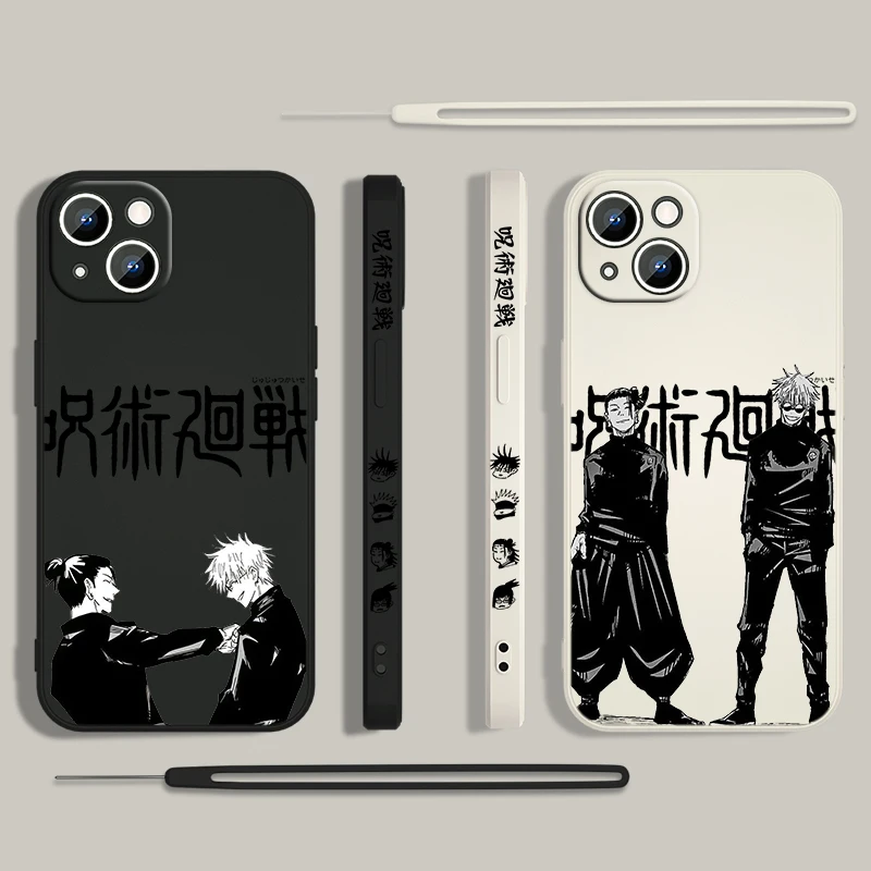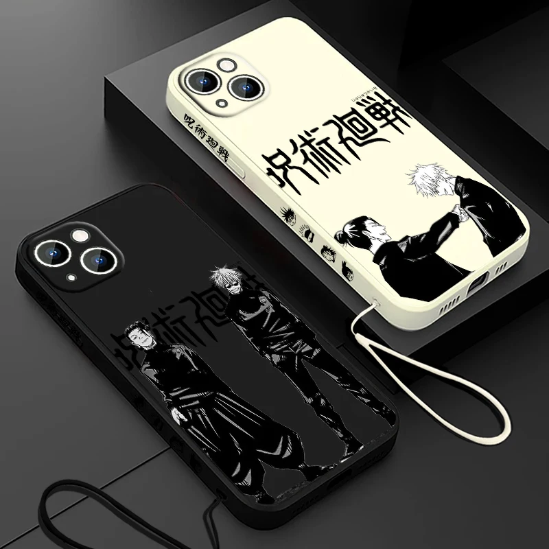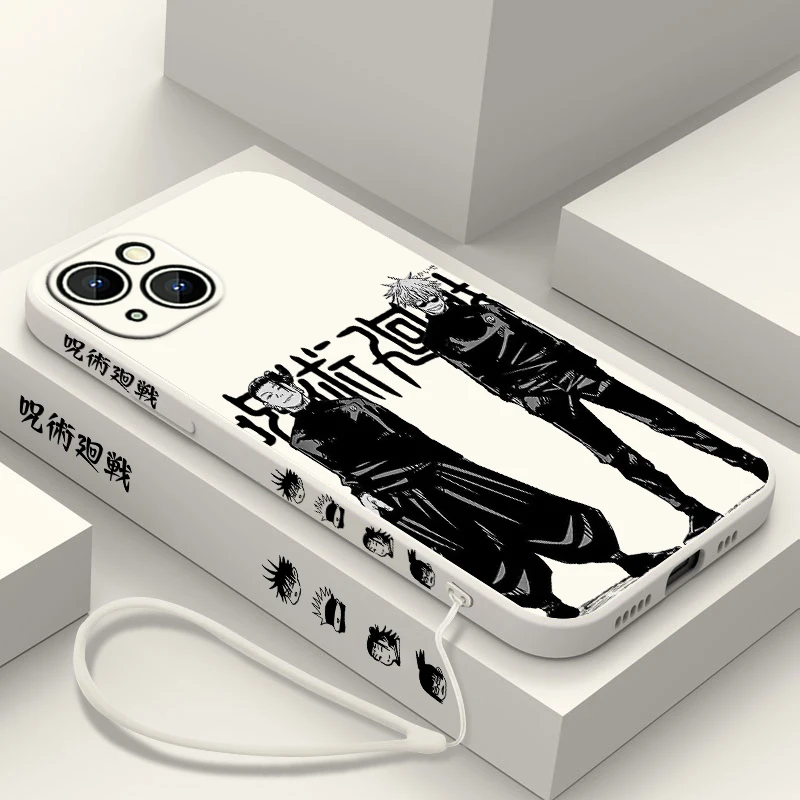 Comprar Jujutsu Kaisen Gojo Suguru funda de teléfono para Apple iPhone 15 14 13 12 11 Pro Max Plus 8 7 SE Liquid Left Rope Capa Cover