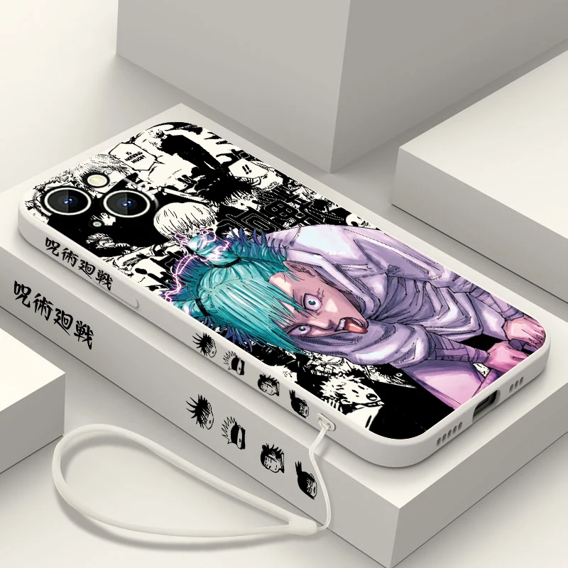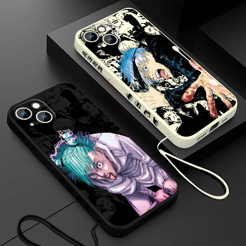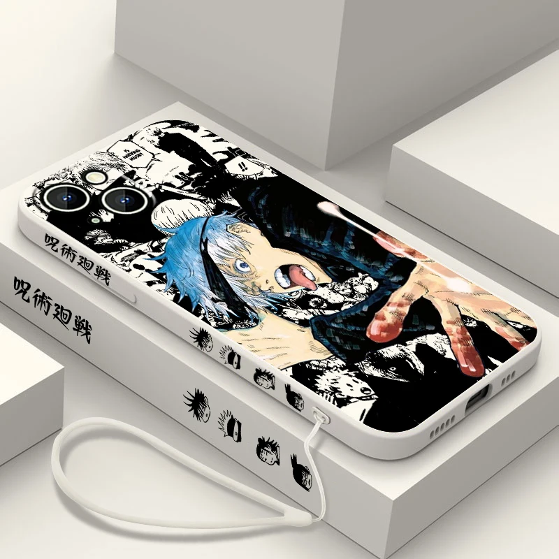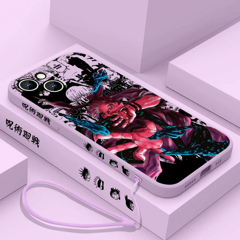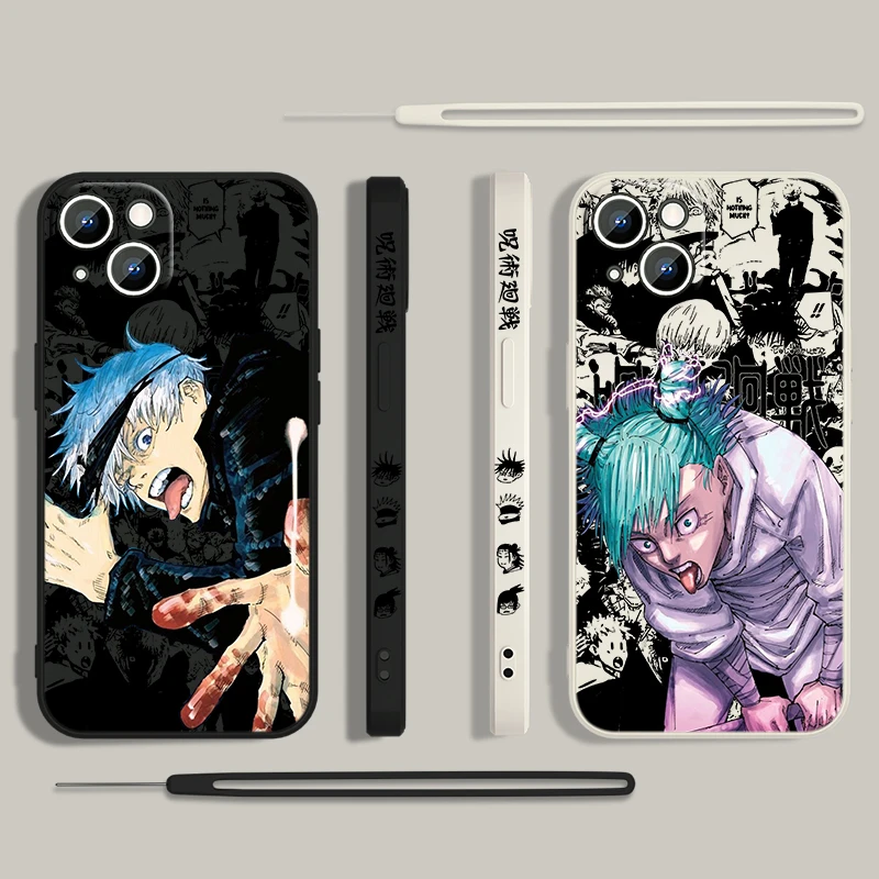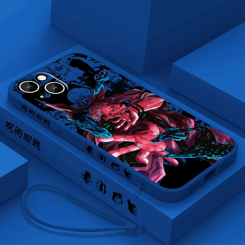 Comprar Jujutsu Kaisen Gojo Sukuna funda de teléfono para Apple iPhone 15 14 13 12 11 Pro Max Plus 8 7 SE Liquid Left Rope Capa Cover