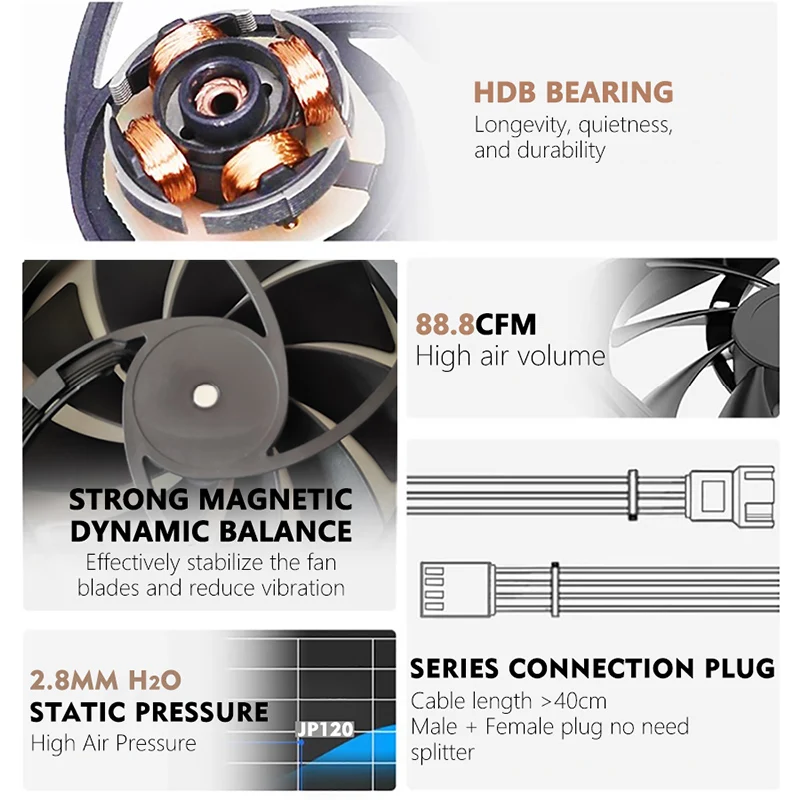 JUMPEAK JP120 ventilador de 120mm 2000RPM de alta velocidad 4PIN PWM rodamiento hidráulico silencioso 12cm ventiladores de refrigeración para juegos PC caja refrigerador líquido