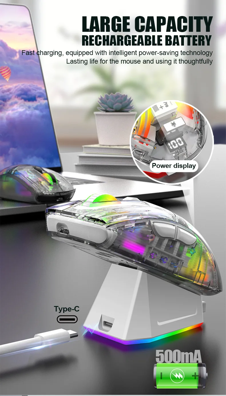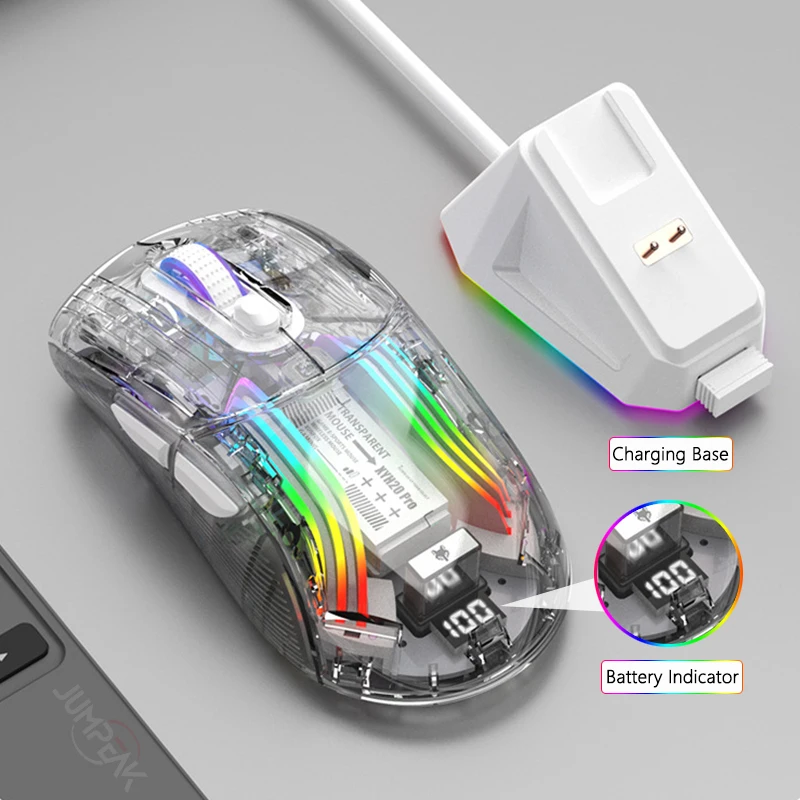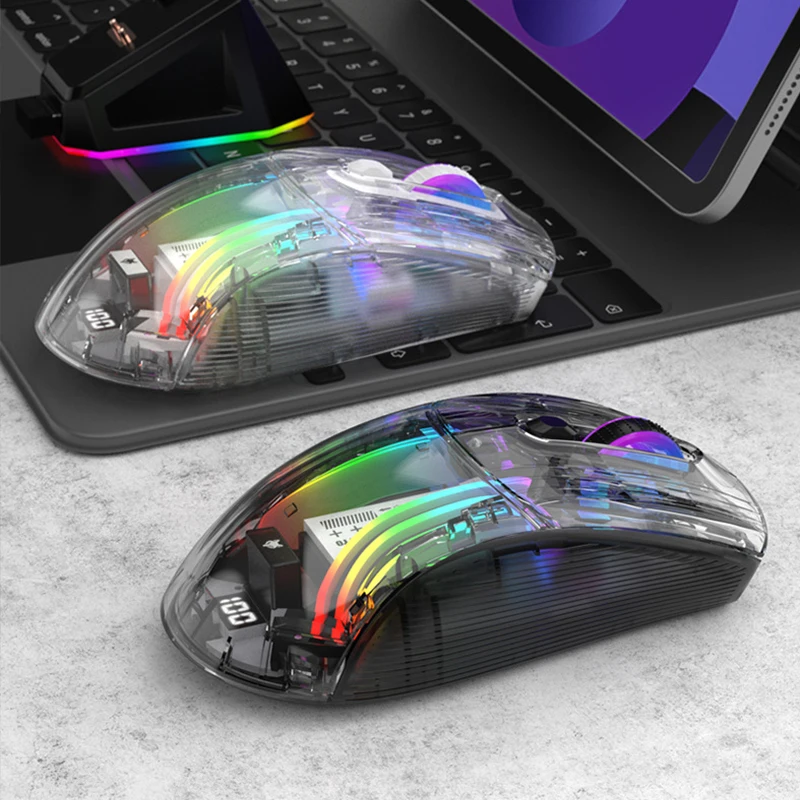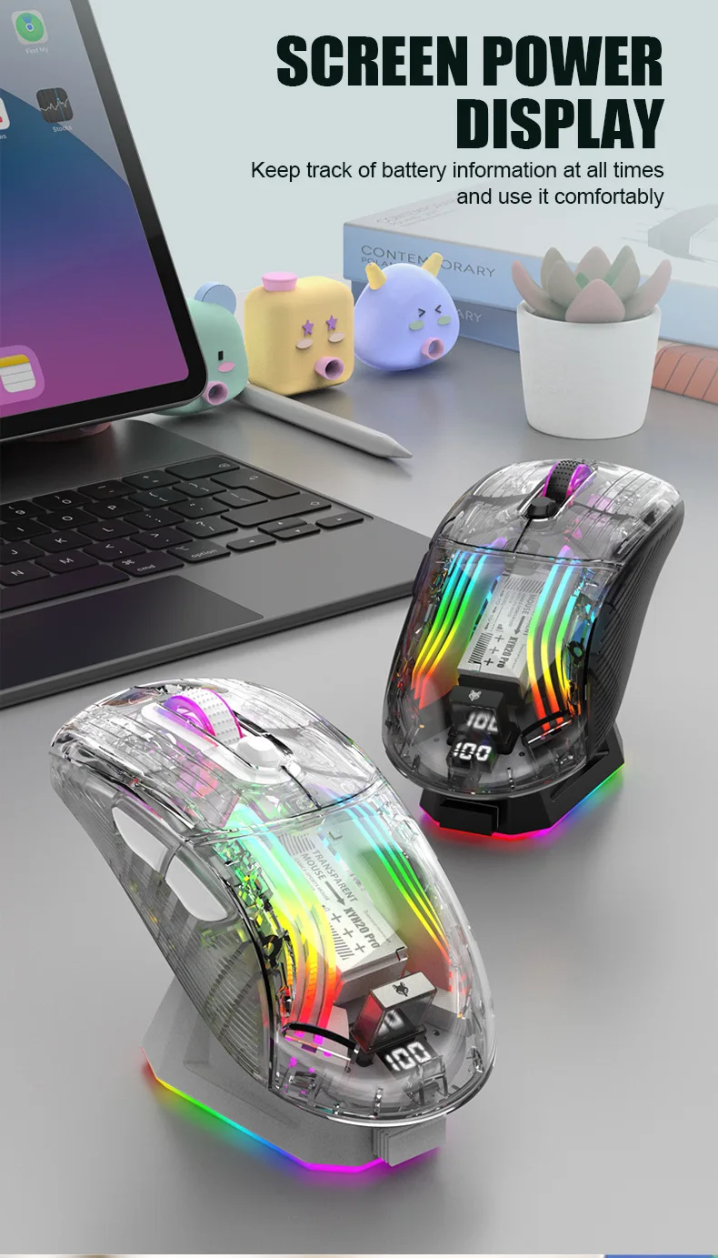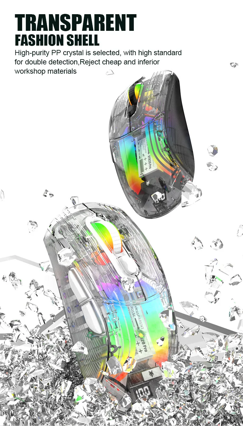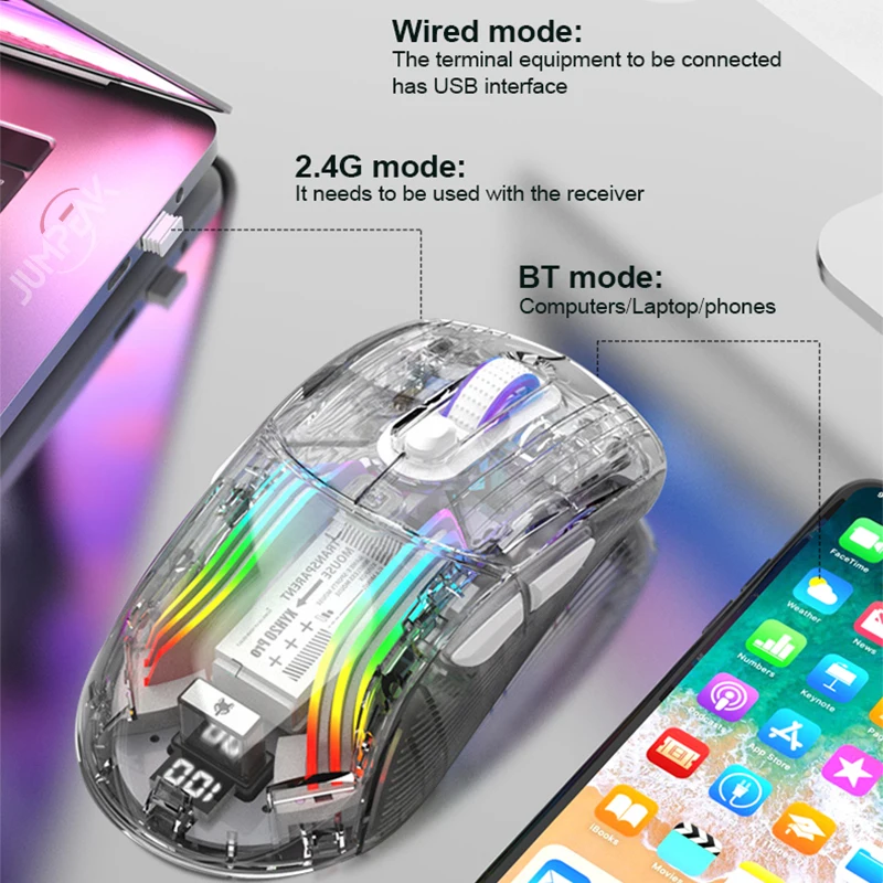 Comprar JUMPEAK Ratón Transparente RGB Gaming Bluetooth Inalámbrico Con Cable 3 Modos Pantalla Digital Type-C Recargable Mudo Ordenador PC jugador ratones