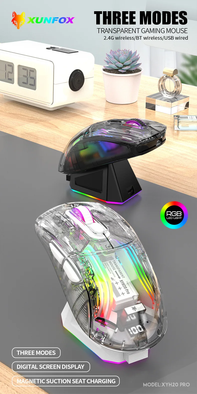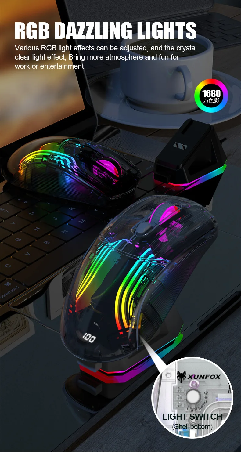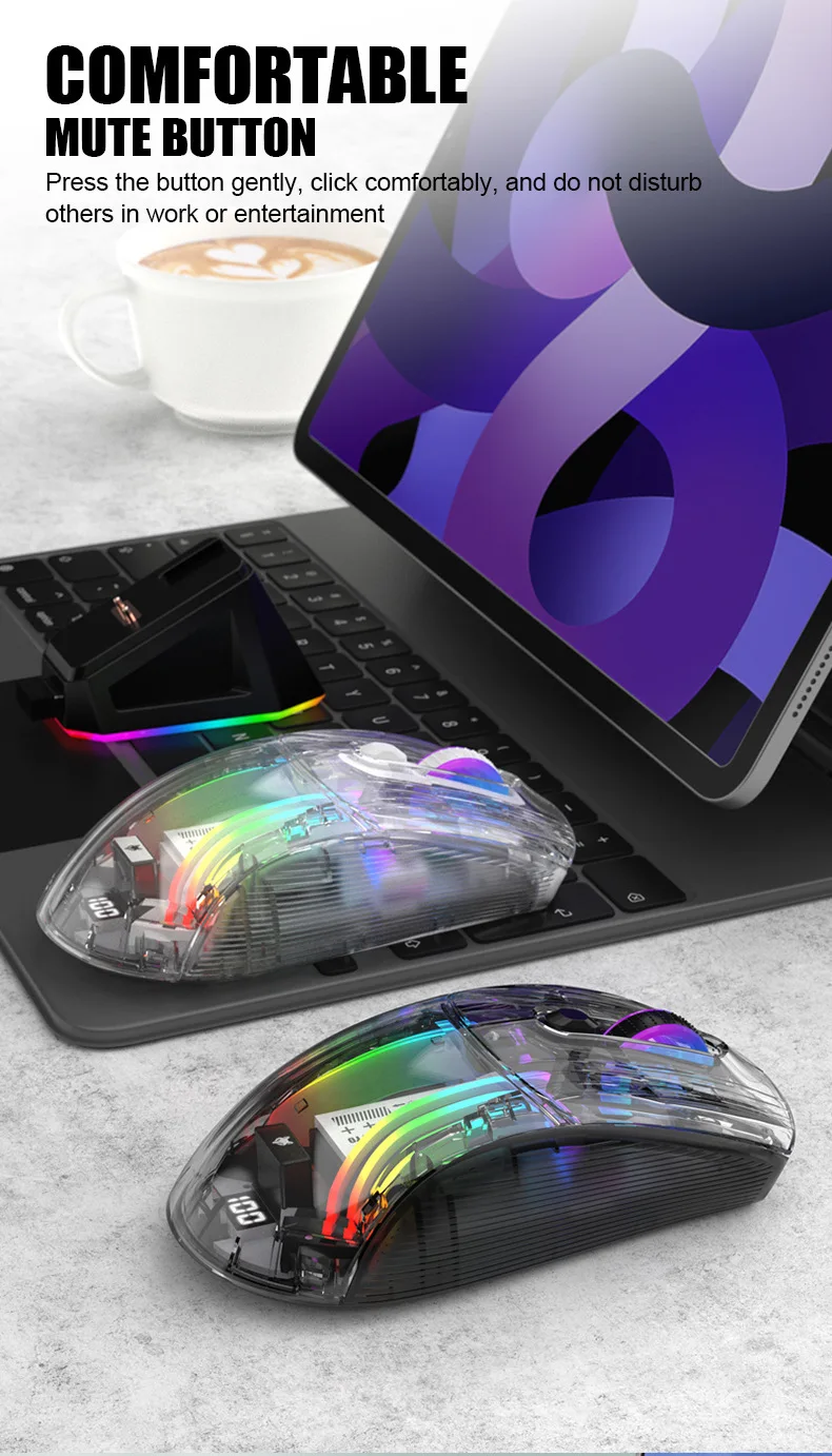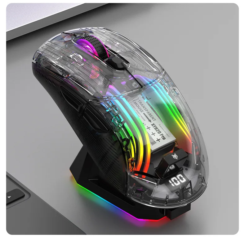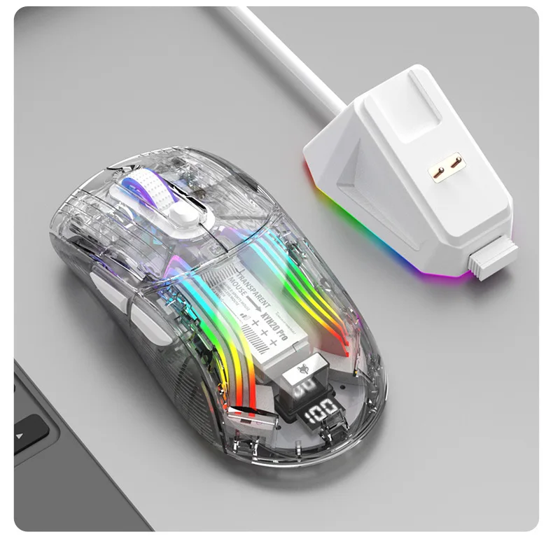 Comprar JUMPEAK Ratón Transparente RGB Gaming Bluetooth Inalámbrico Con Cable 3 Modos Pantalla Digital Type-C Recargable Mudo Ordenador PC jugador ratones