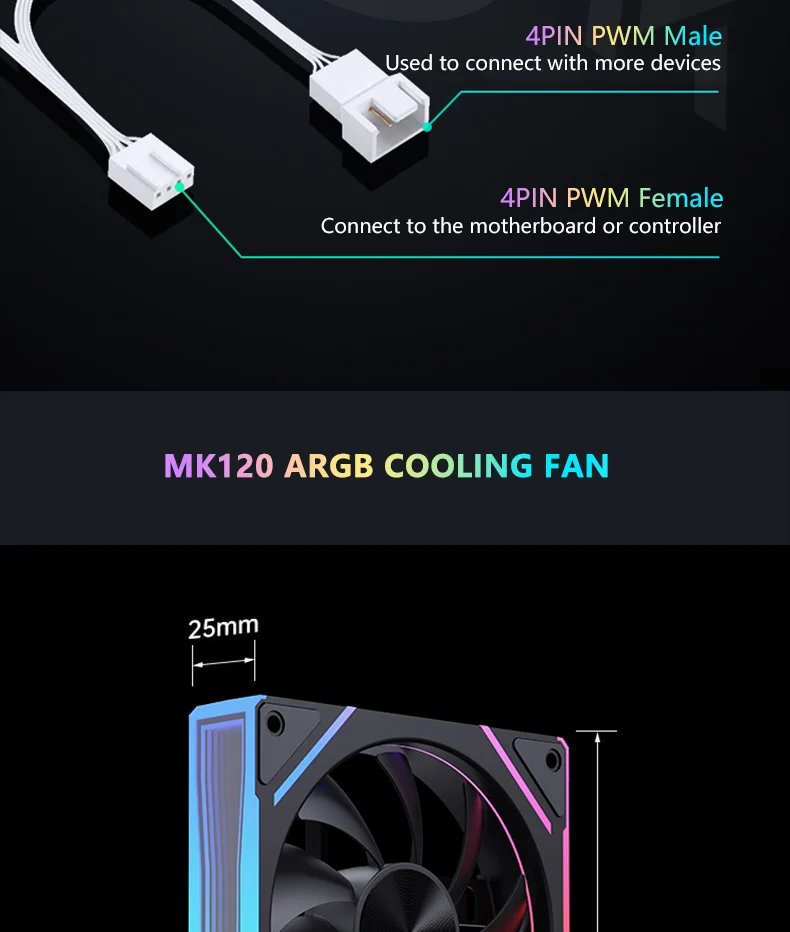 JUMPEAK-ventilador de refrigeración MK120 ARGB Infinite Mirror, 120mm, PWM, silencioso, 12cm, RGB, para PC, funda de ordenador, armario, CPU, enfriador de agua