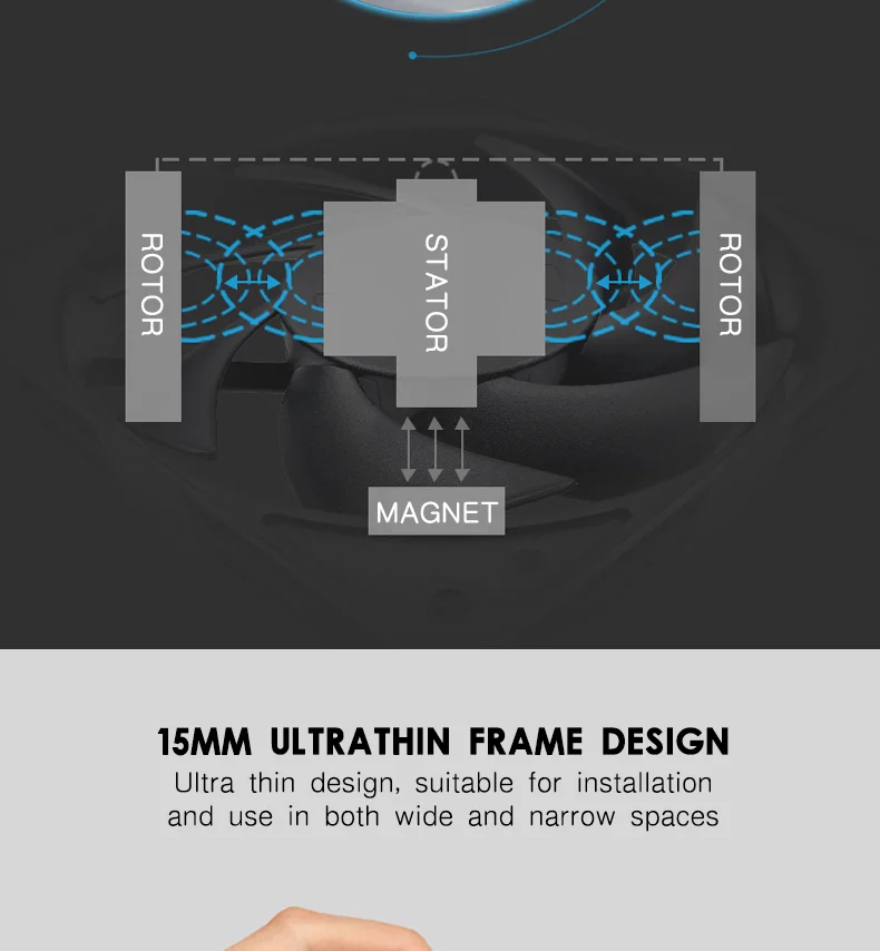 Comprar JUMPEAK ventilador ultradelgado para ordenador, sistema de refrigeración con cojinete magnético PWM, 14cm, 15mm, 4 pines, 14015mm
