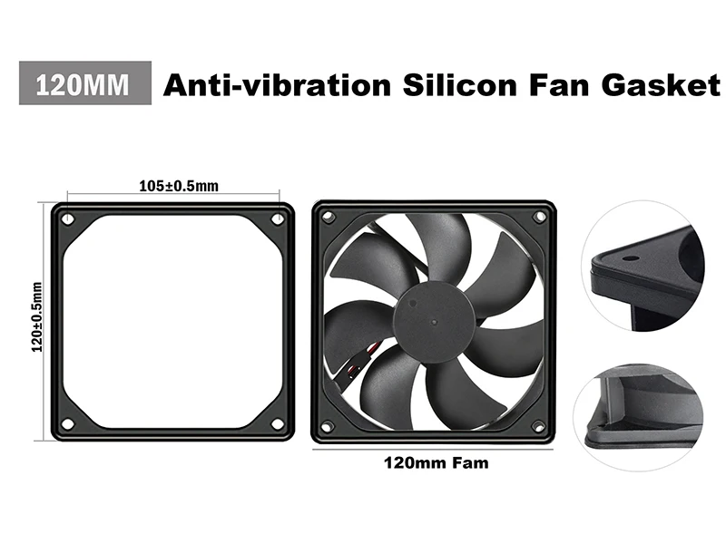 Es fácil de usar, conveniente para fijar entre la carcasa de su PC y el ventilador, puede absorber golpes y reducir el ruido, se puede usar en la computadora u otro ventilador industrial