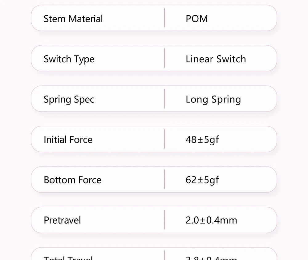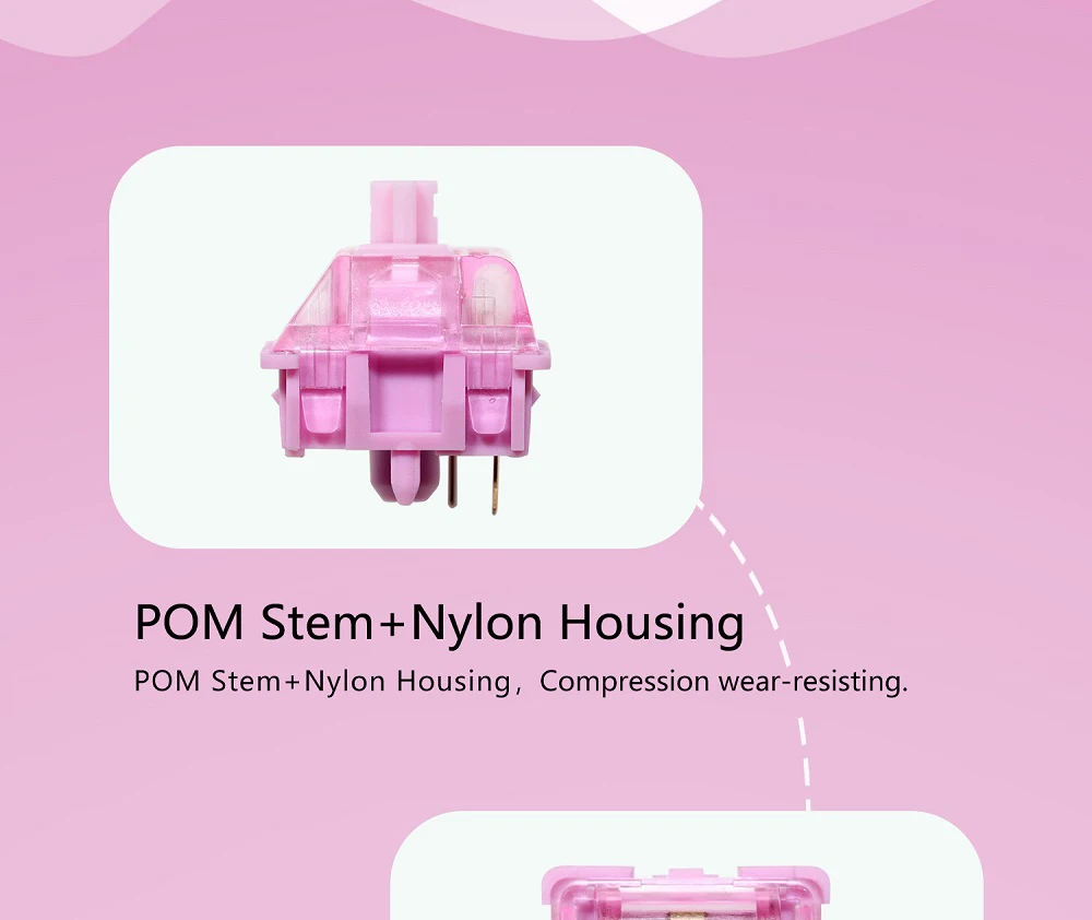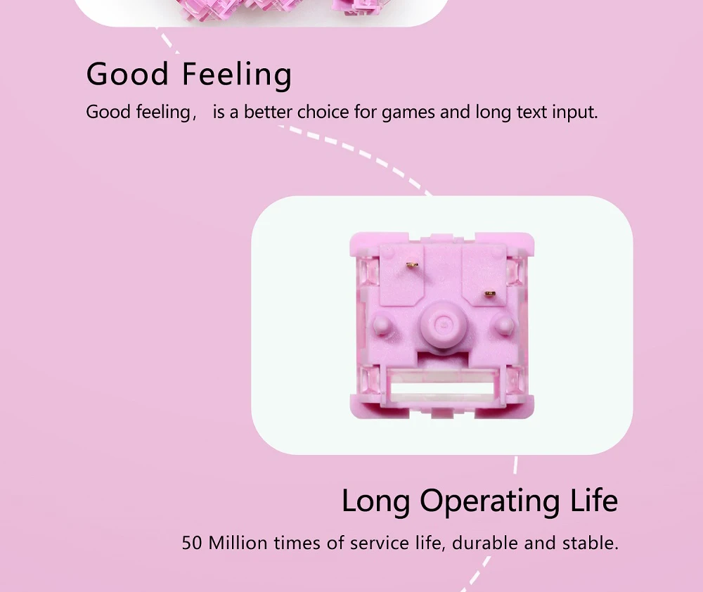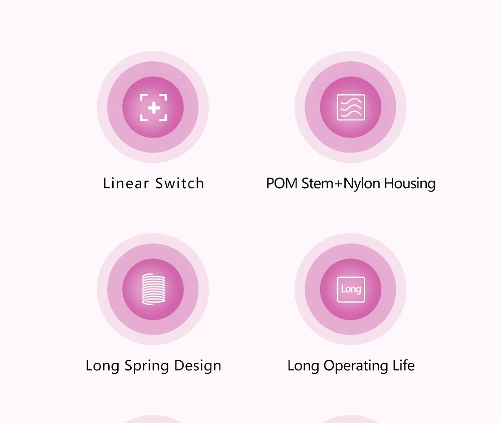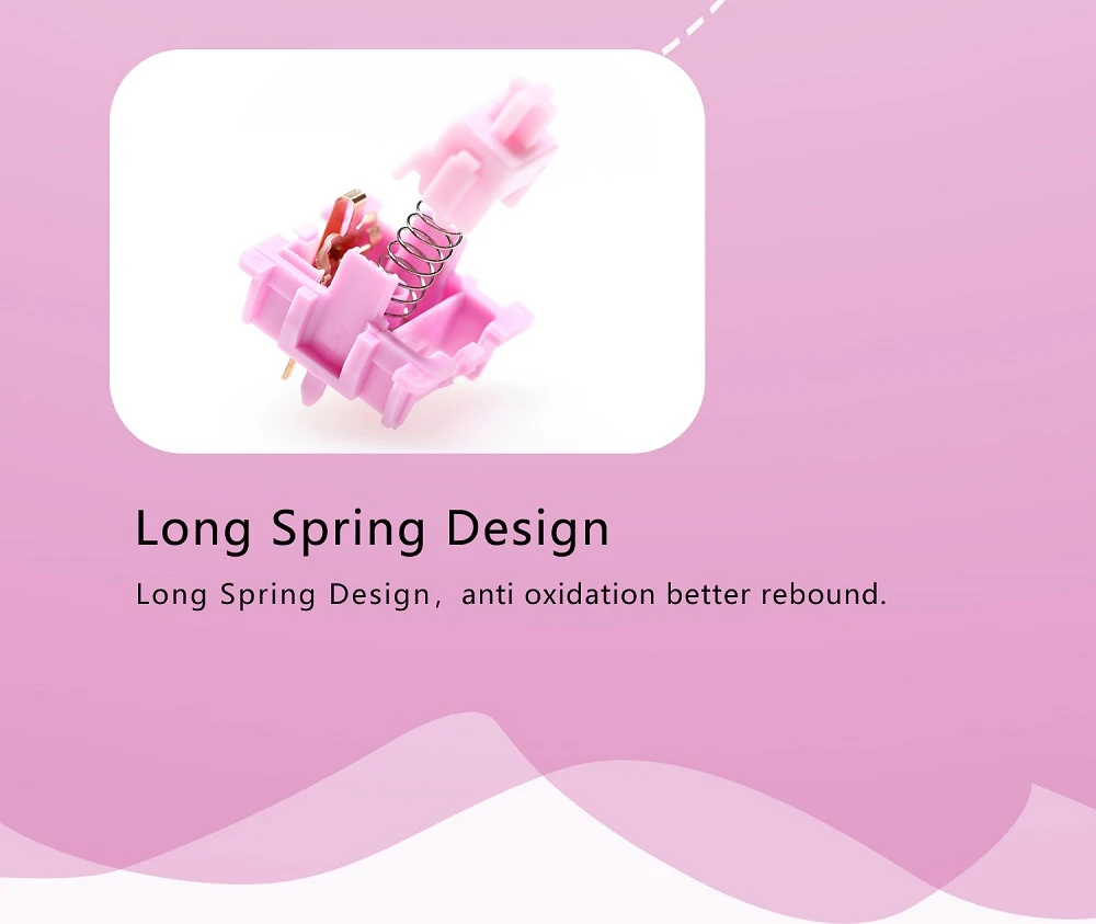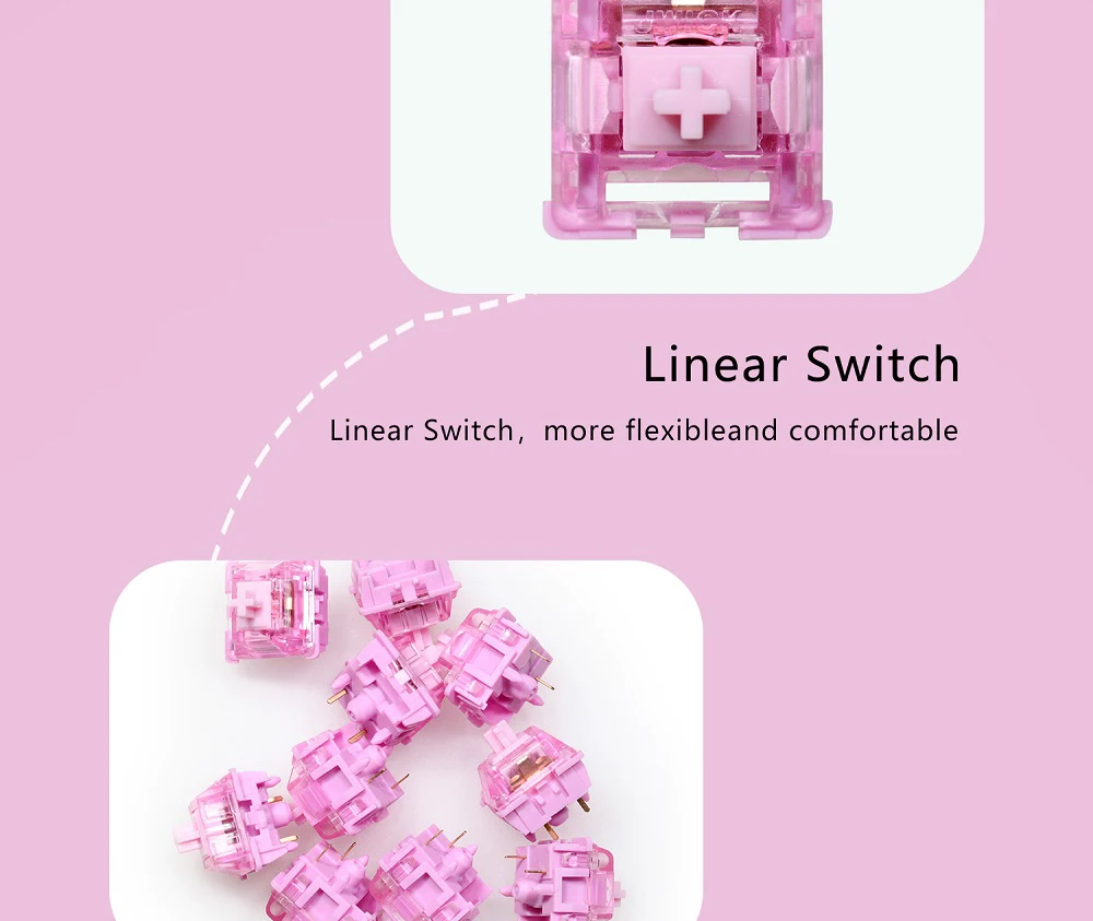 Comprar JWICK-interruptor lineal de Jade rosa, dispositivo de 5 pines, RGB, SMD, 62g, mx, para teclado mecánico, 50m, POM, nailon, resorte largo, color rosa