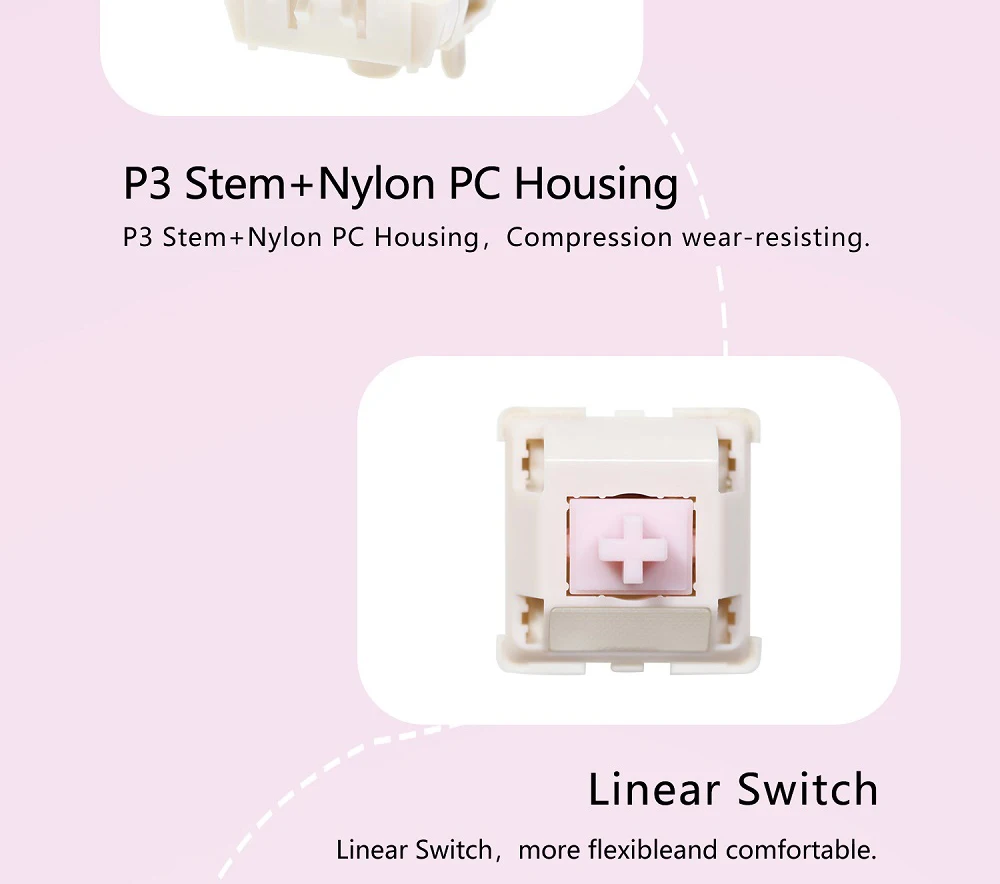Comprar JWICK-interruptor lineal JWK Jade Rabbit, 60g, 5 pines, SMD, RGB, mx, para teclado mecánico, PC, nailon P3, 60M, resorte chapado en oro