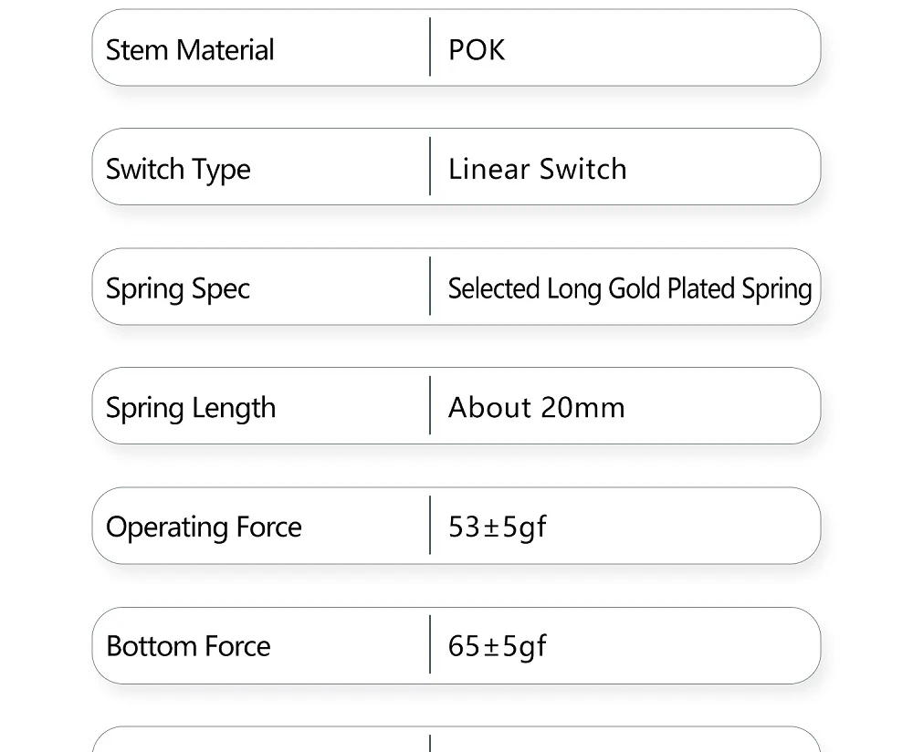Comprar JWICK JWK Qingsi Linear MX Switch 5pin RGB SMD 65g para teclado mecánico PC PA POK Long Gold Plated Spring 53g Factory Lubed