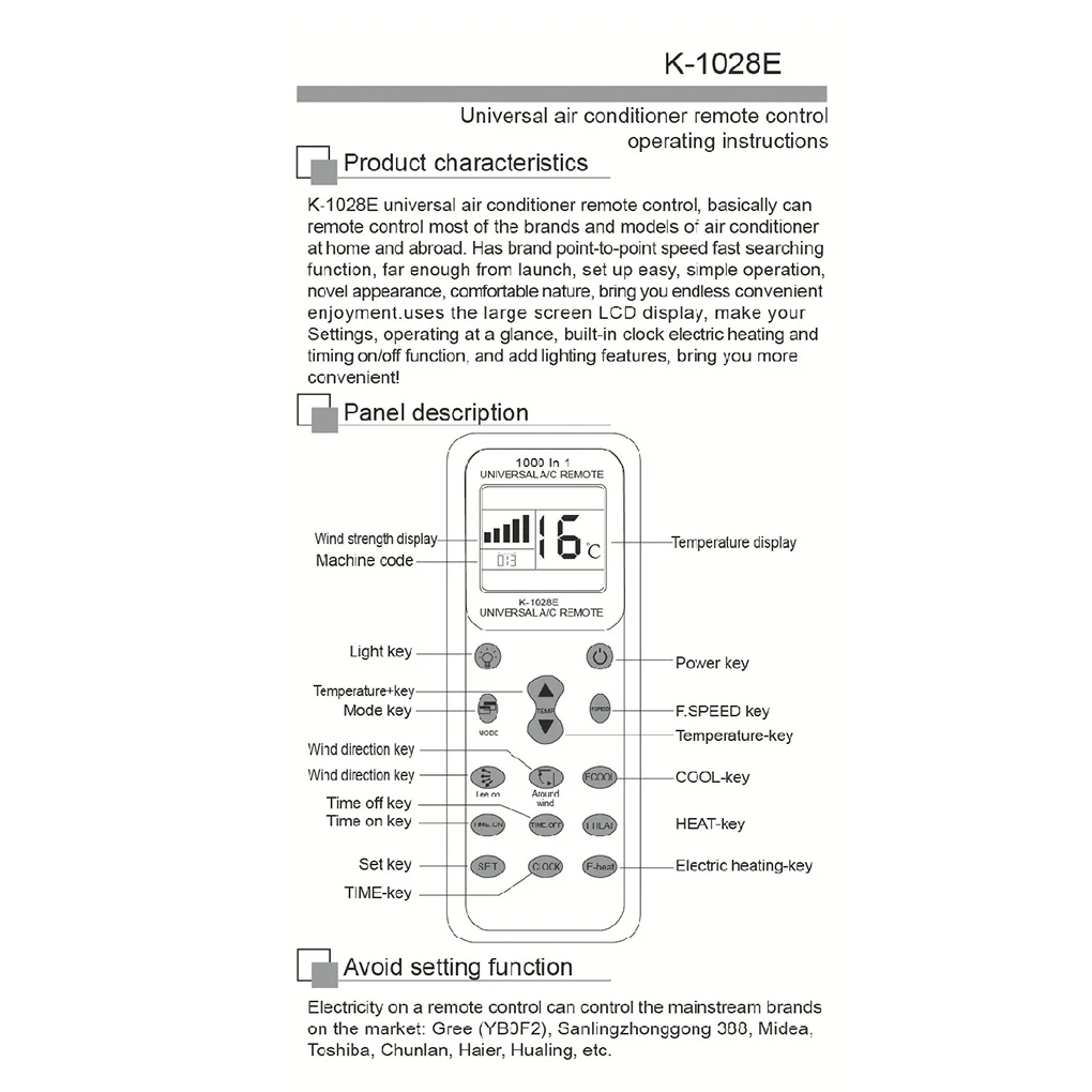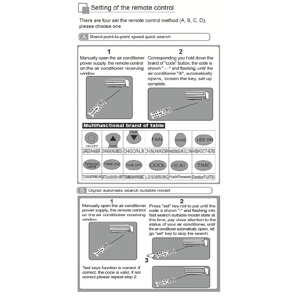 Se ha diseñado para controlar de forma remota varias marcas y modelos de los acondicionadores de aire, funciones completas, Larga Distancia de Transmisión de 8-10 m, fácil configuración.