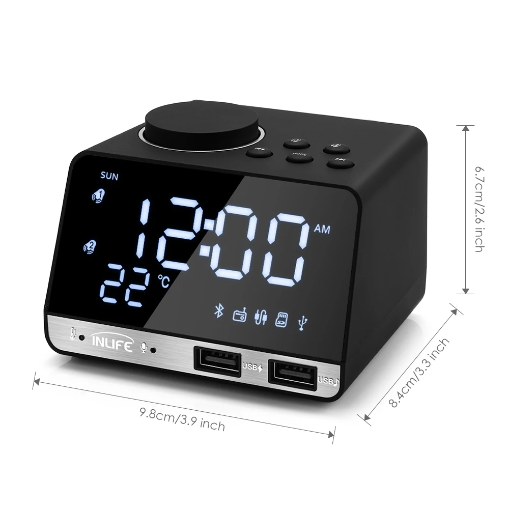 Altavoz despertador de Radio 4,2 compatible con Bluetooth Inlife K11 con 2 puertos USB reloj despertador Digital LED decoración del hogar reloj de mesa de repeticiónCaracterísticas principales:
