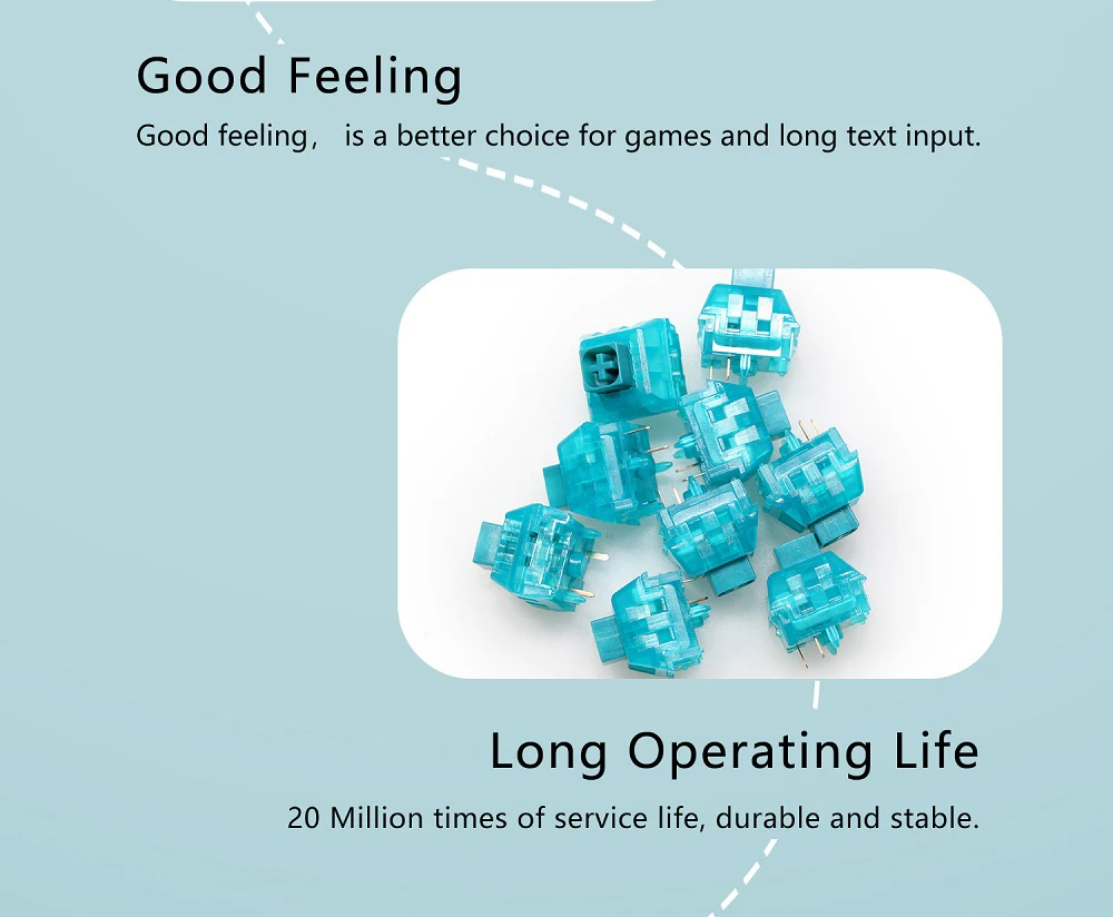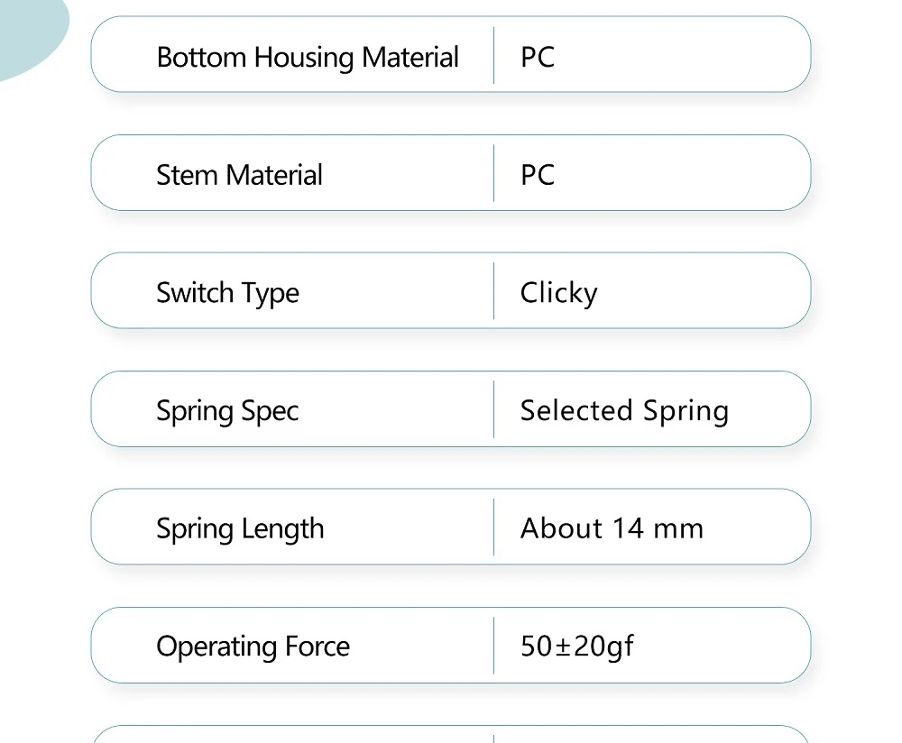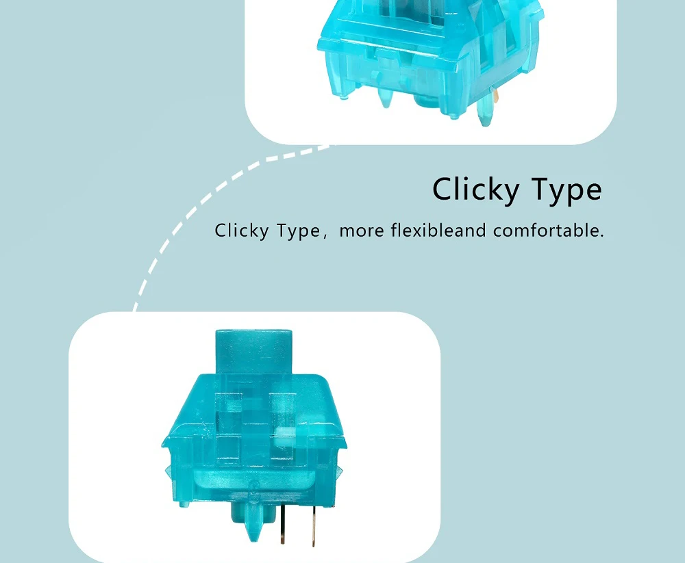 Kailh BOX interruptor de Jade de medianoche para juegos, Teclado mecánico MX Stem, 5 pines, PC, interruptores azules Clicky como caja blanca
