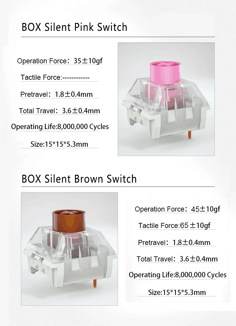Comprar Kailh BOX interruptor silencioso para teclado mecánico, interruptores táctiles lineales de color rosa y marrón, RGB, SMD, MX, 3 pines, interruptor de sonido silencioso para juegos