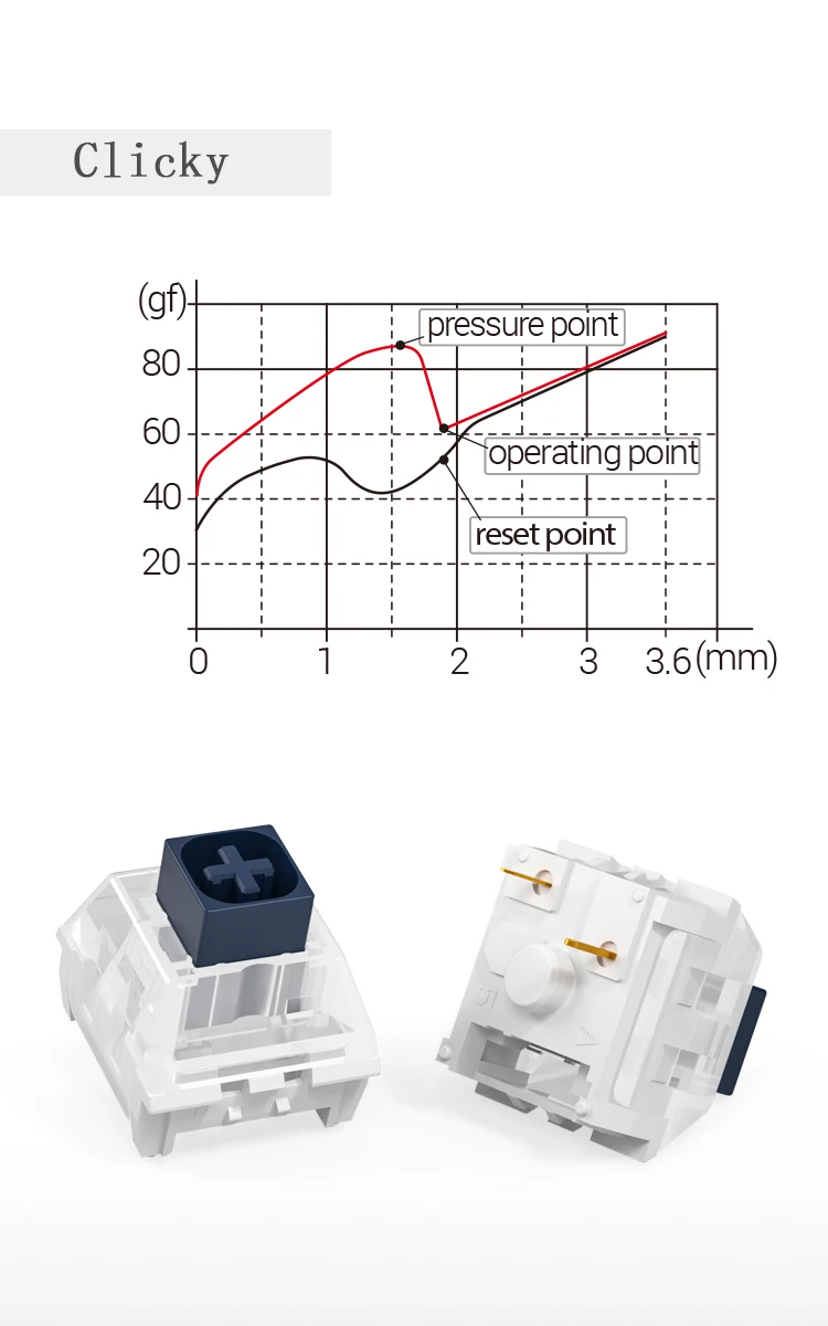 Si te gustan los switches clicky esta es la mejor opción. Suenan más graves que otros. Lo malo es que cuesta presionarlo un poco, pero te acostumbras.