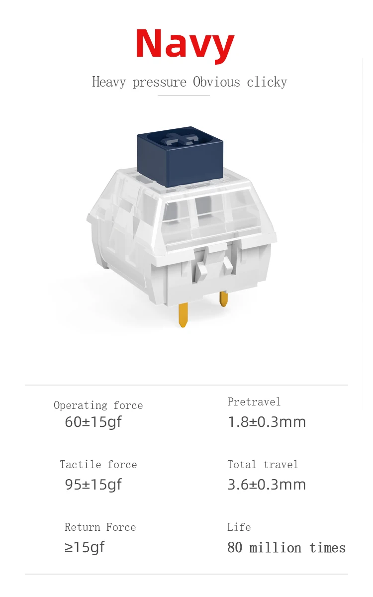 Estos interruptores me dan completa satisfacción. La devolución física con cada toque de tecla es muy satisfactoria, el lado clicante es perfecto!.