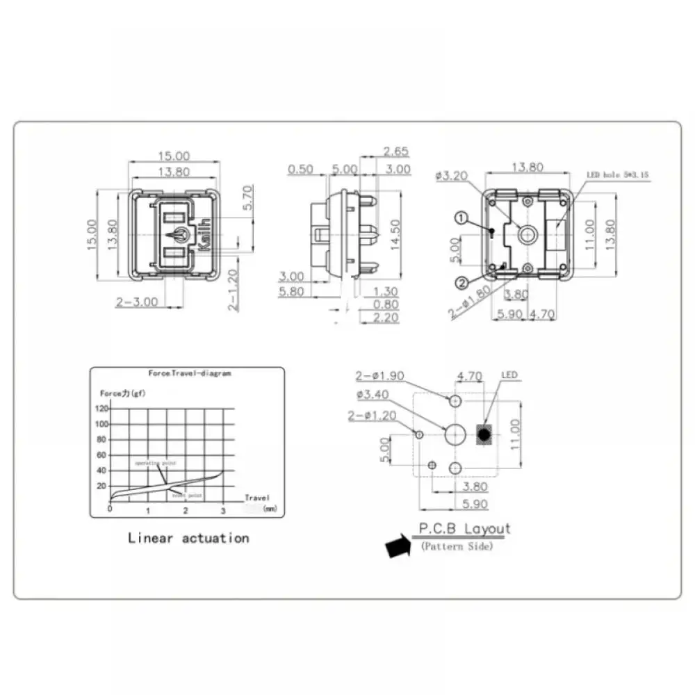 PG1350, también llamado Kailh Chocolate Switch o Kailh Choc Switch es una serie de interruptores de contacto metálicos de perfil bajo de Kailh.