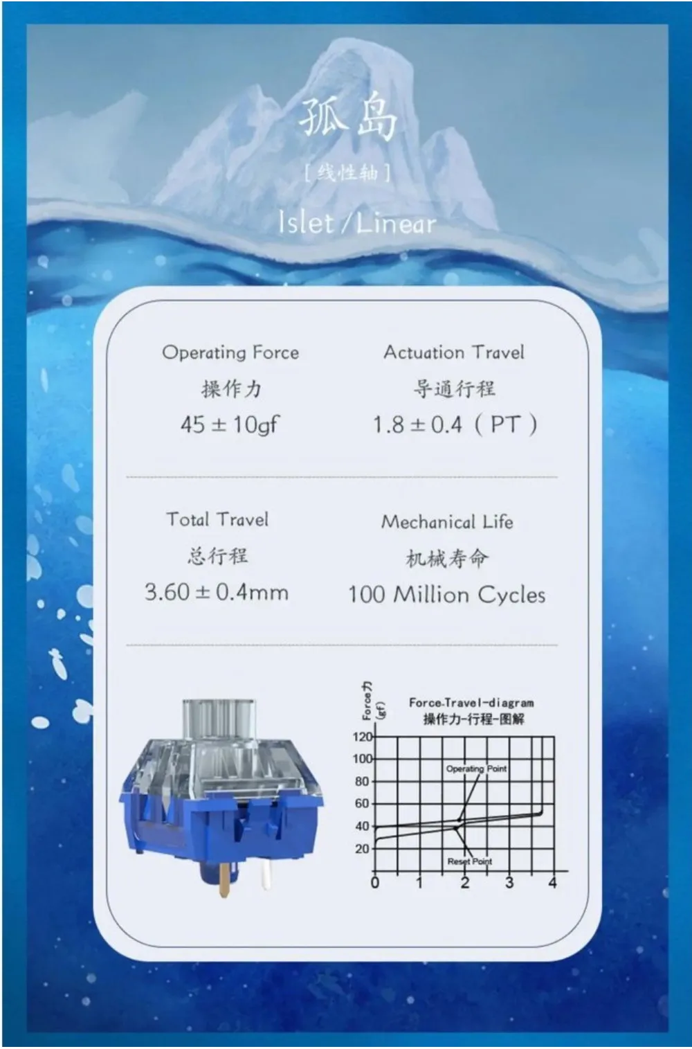 Comprar Kailh-interruptor de ballena táctil, interruptor lineal de islezo, 45g, RGB, Teclado mecánico lubricado transparente, interruptores MX