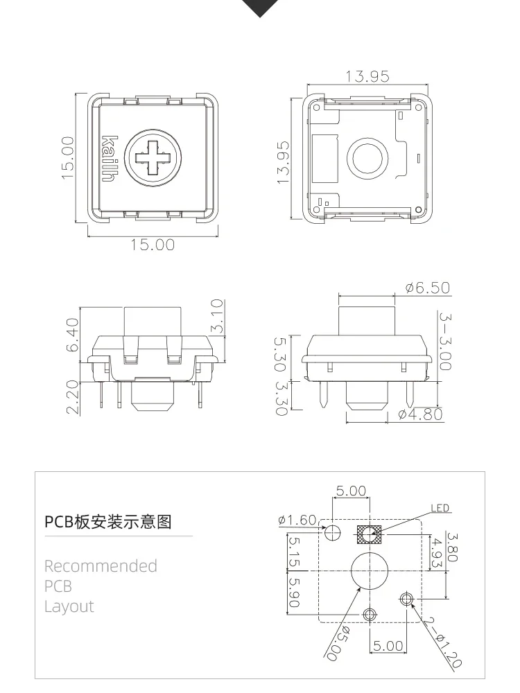 El soporte de la tecla está inspirado en el interruptor Kailh, pero los dos tipos no son compatibles.