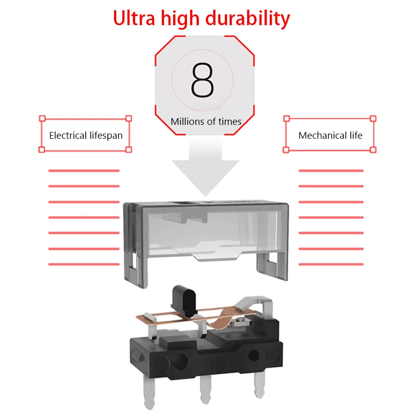 4/3/2/1 8,0 Original Kailh GM Ratón Micro interruptor Micro botón Contactor dorado 80 millones de clics de Vida 3 pines punto negro