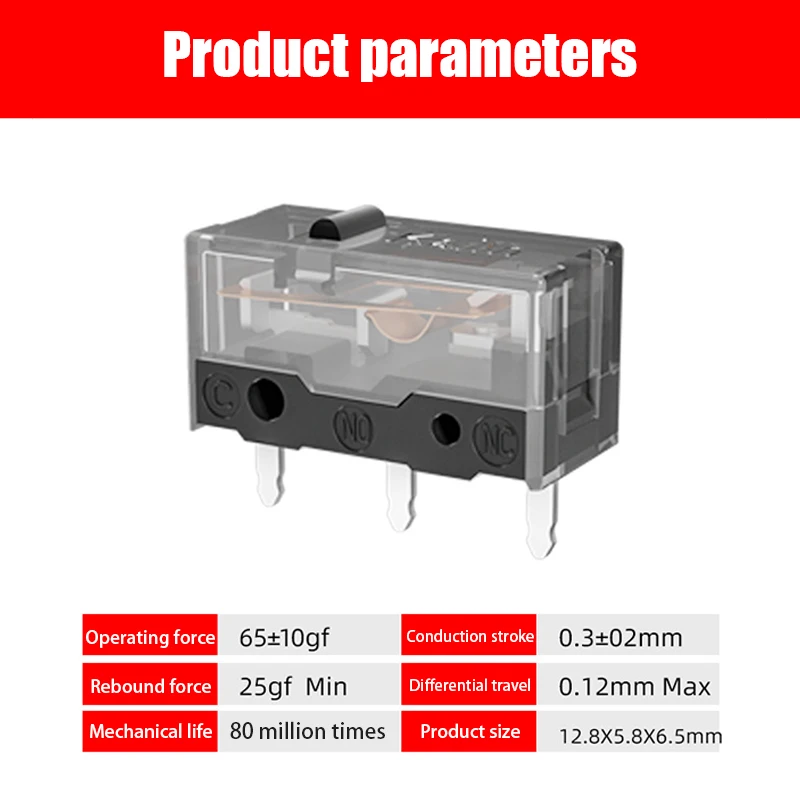 4/3/2/1 8,0 Original Kailh GM Ratón Micro interruptor Micro botón Contactor dorado 80 millones de clics de Vida 3 pines punto negro