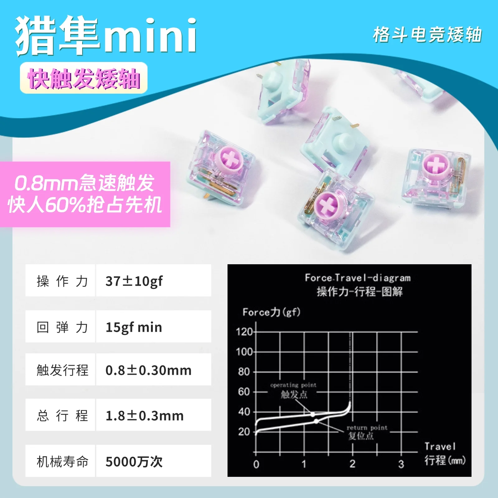 Heredando la reacción relámpago de las aves de la presa al cazar, la carrera de disparo ultracorto de 0,8 mm aumenta la velocidad de disparo en aproximadamente un 60% en comparación con los ejes normales.La respuesta de la comando es tan rápida como las alas de una presa, y los movimientos combinados son suaves, desde el punzón del dragón ascendente hasta el movimiento definitivo, solo un toque de las yemas de los dedos, para que el oponente siempre sea un paso más lento que tú.