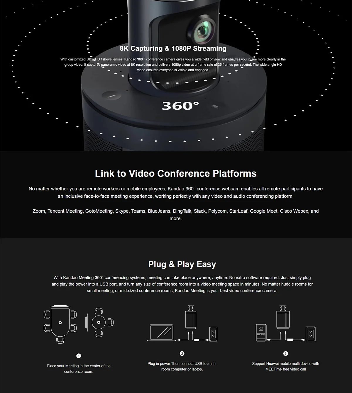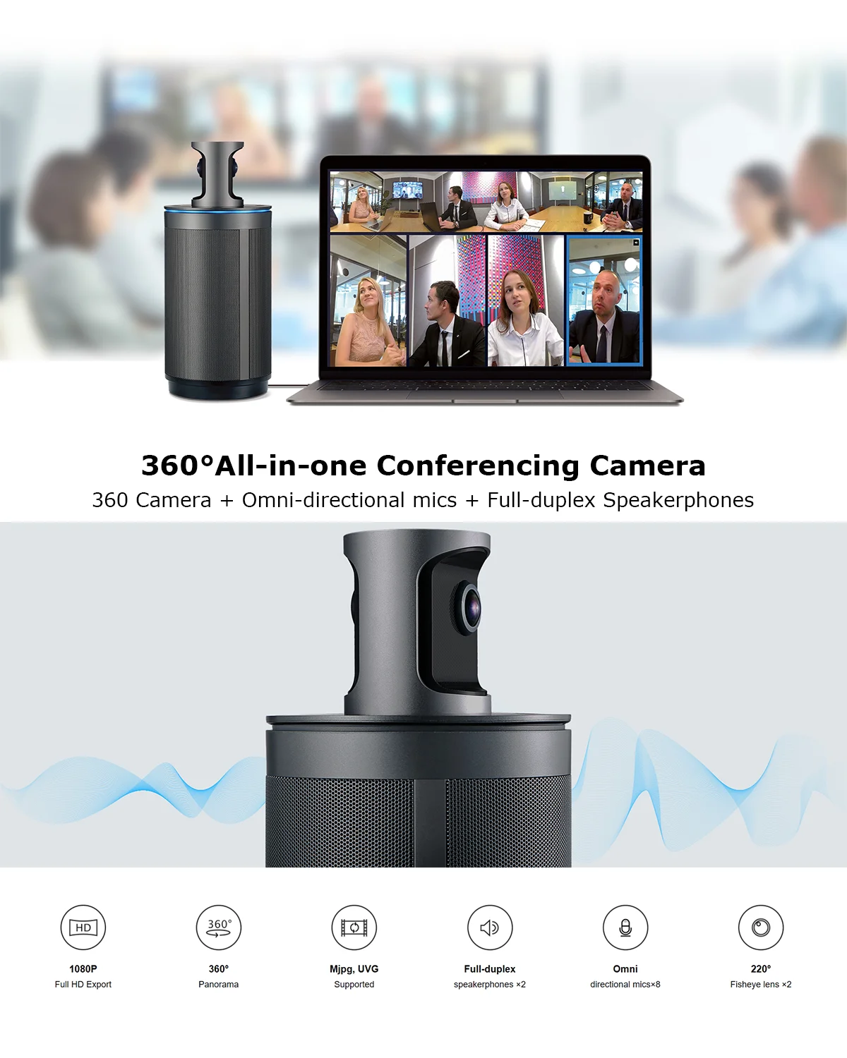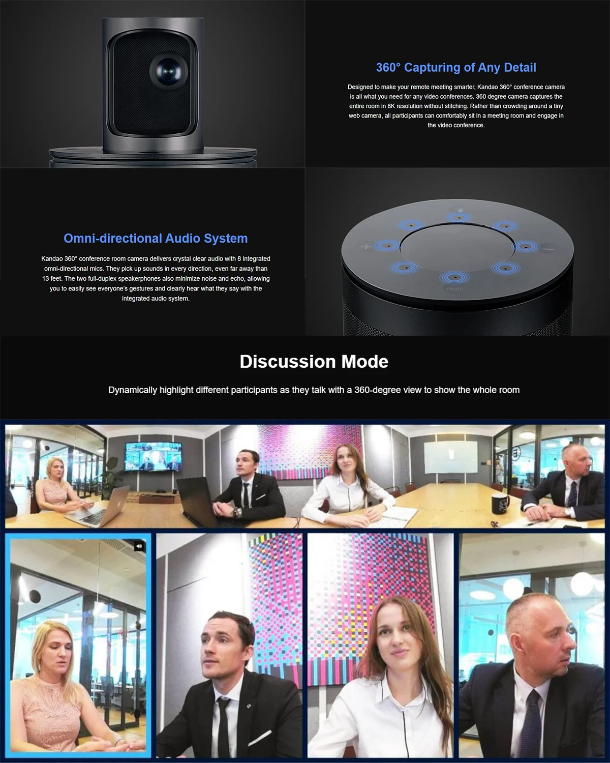 Comprar KanDao-Cámara de videoconferencia 360 Original, 8K capturada, enmarcado alimentado por IA y seguimiento de altavoces, 1080p HD, 360 grados