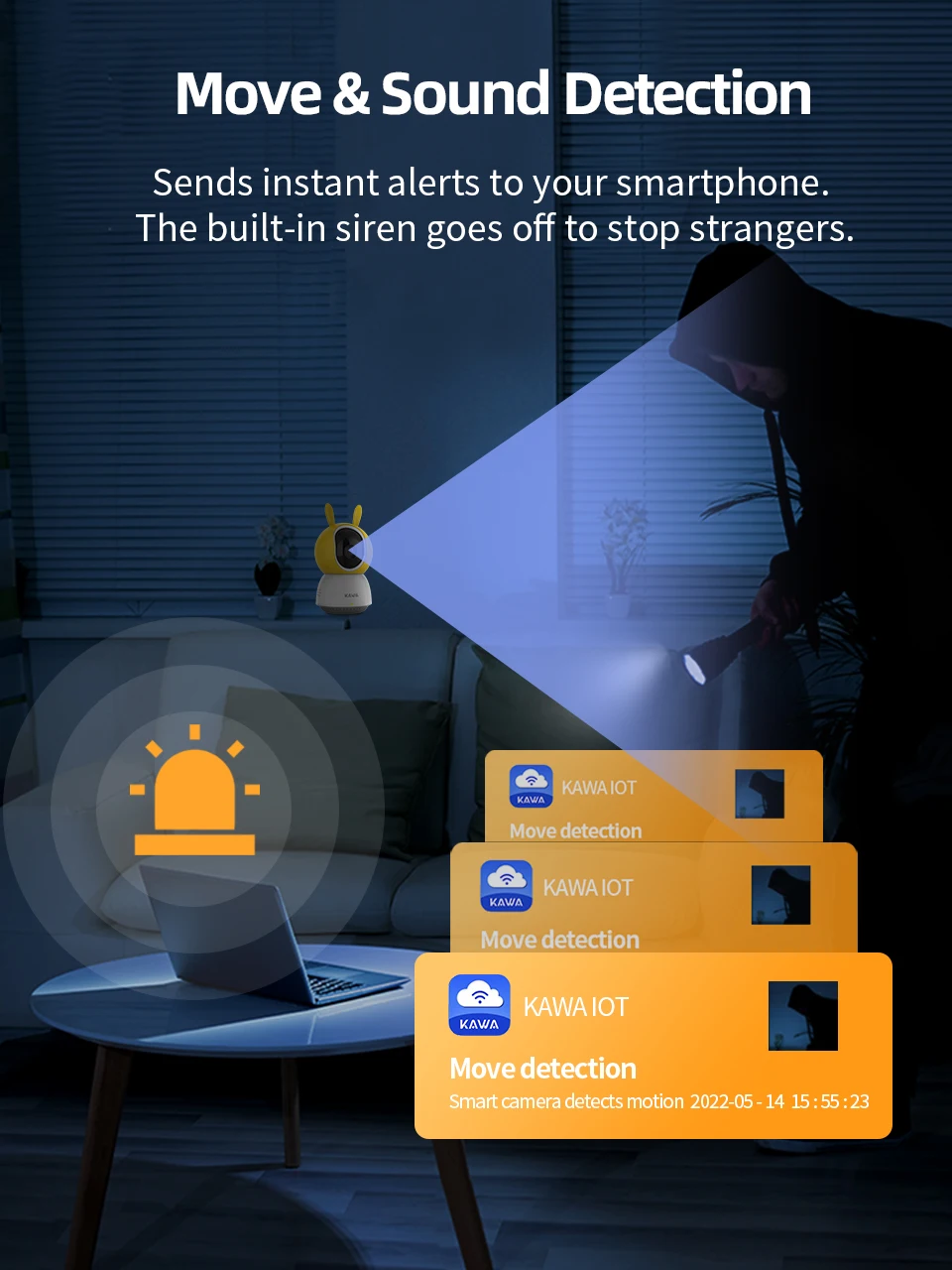 La cámara de casa inteligente atrapa cada momento incluso en tono negro, enciende la alarma de sirena para shock al intruso cuando extraños se rompen en tu casa. Ajuste exactamente su necesidad para la seguridad de su hogar y familia. La imagen todavía puede ser más brillante y detallada en comparación con otras cámaras típicas.