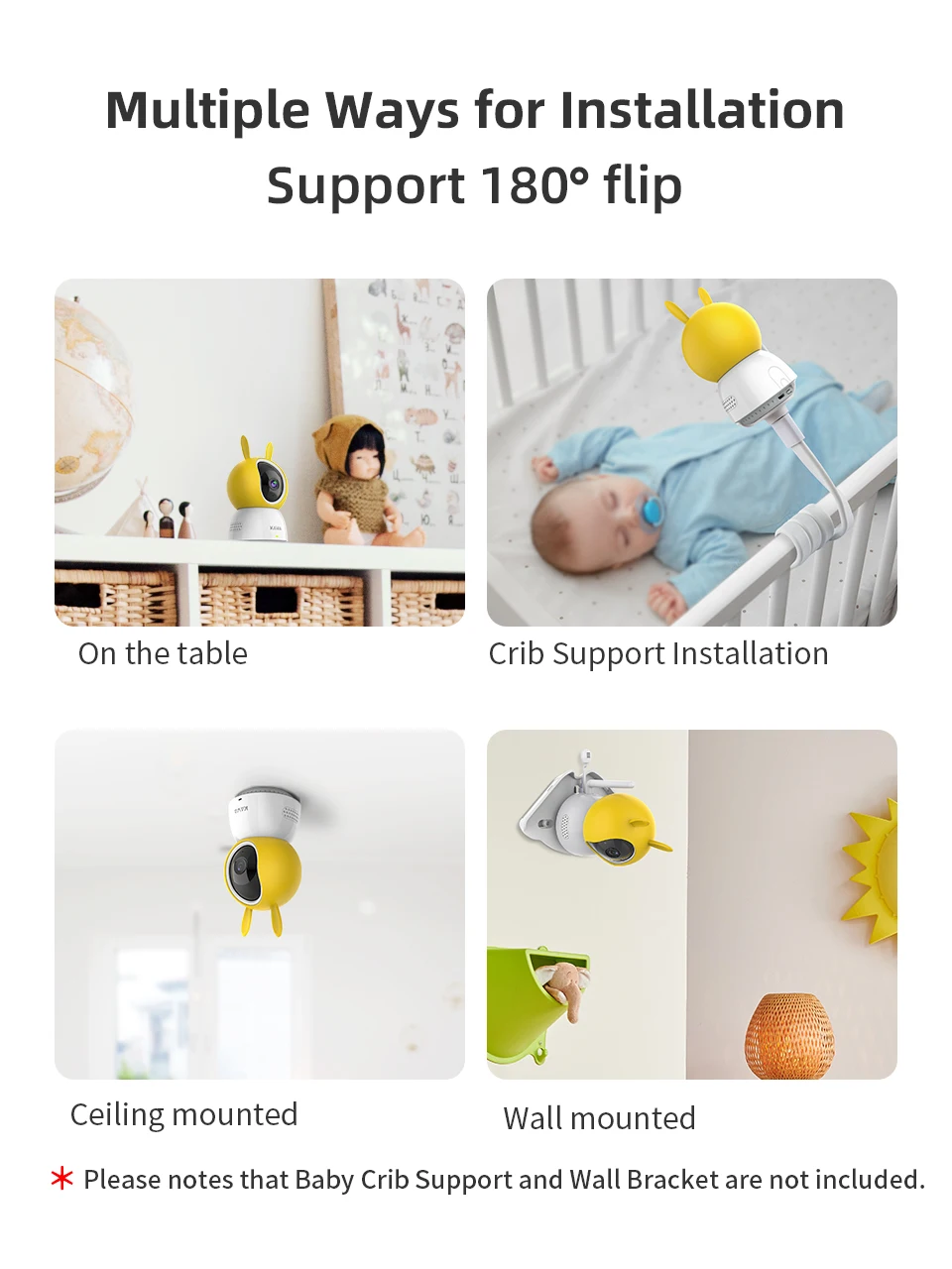 Nota: La tarjeta Micro SD, el soporte para cuna de bebé y el soporte de pared no están incluidos. Las opciones de almacenamiento en la nube están disponibles para su compra.