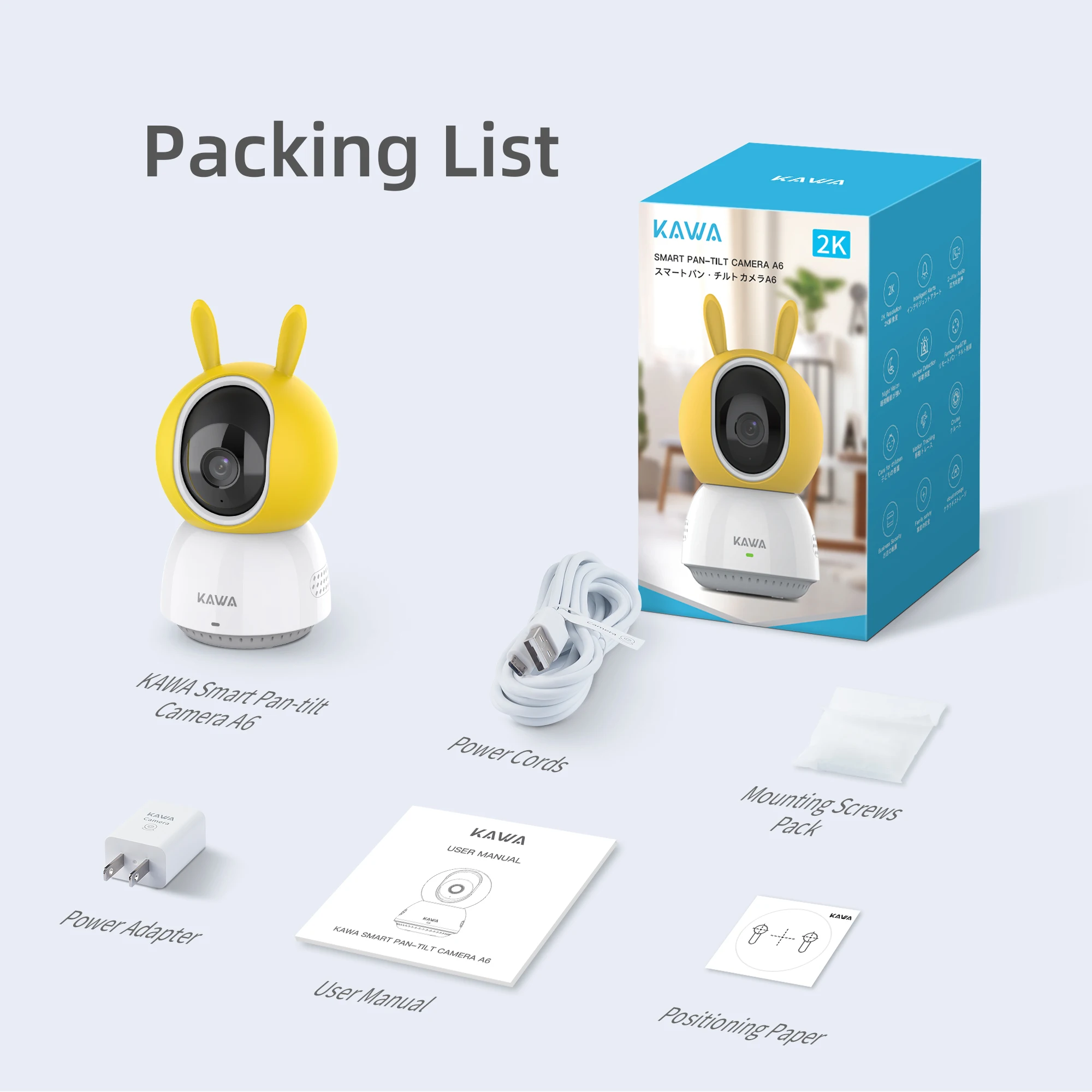 Comprar KAWA-cámara IP 2K con Wifi 360 para interiores, videocámara de seguridad PTZ CCTV, Monitor inalámbrico para mascotas y bebés, seguimiento Alexa