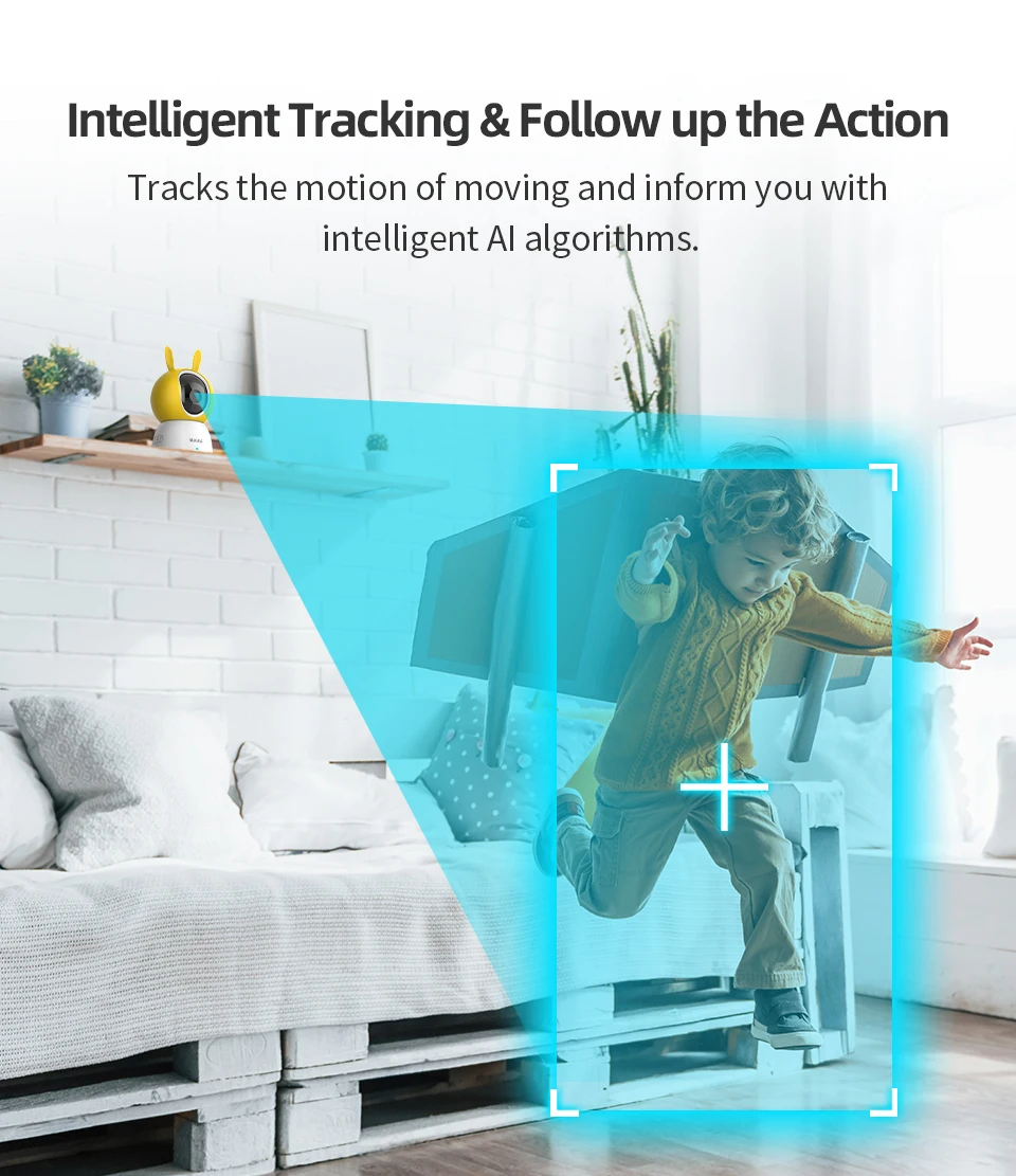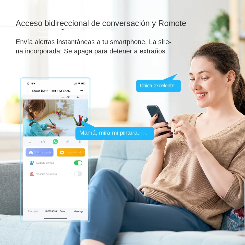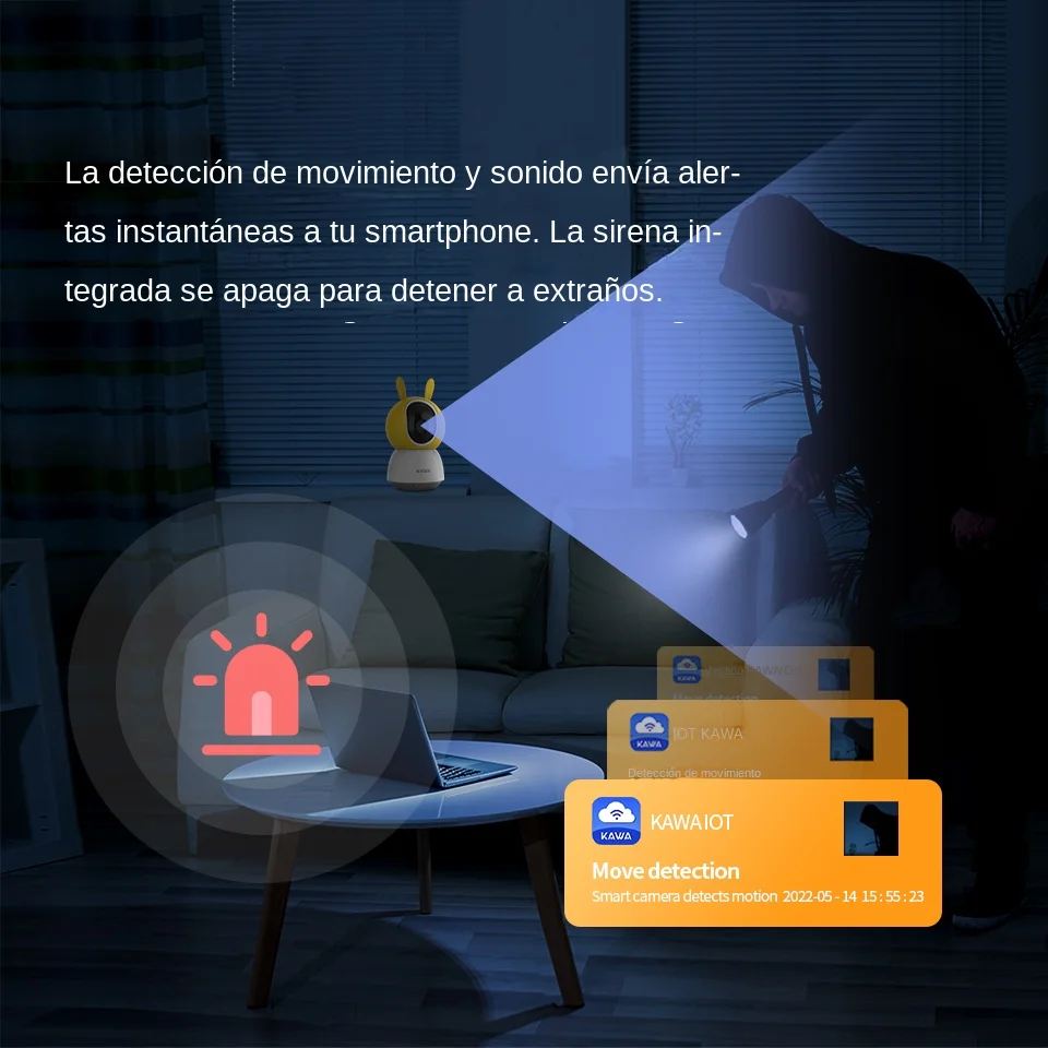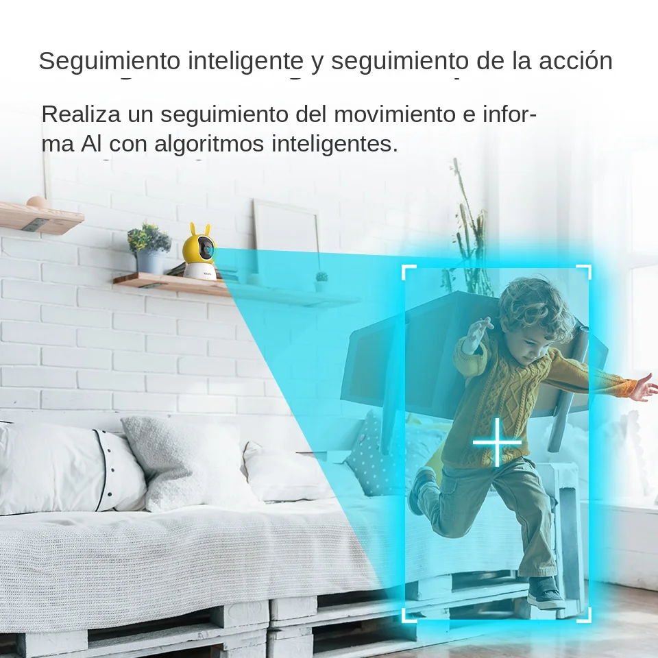 La cámara se centrará en ella y enviará notificaciones a tu teléfono móvil para garantizar la seguridad de tu hijo.