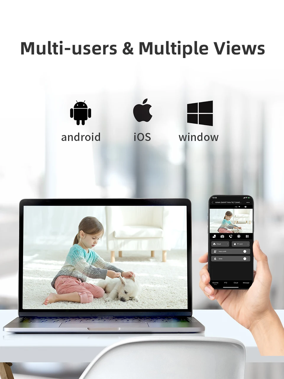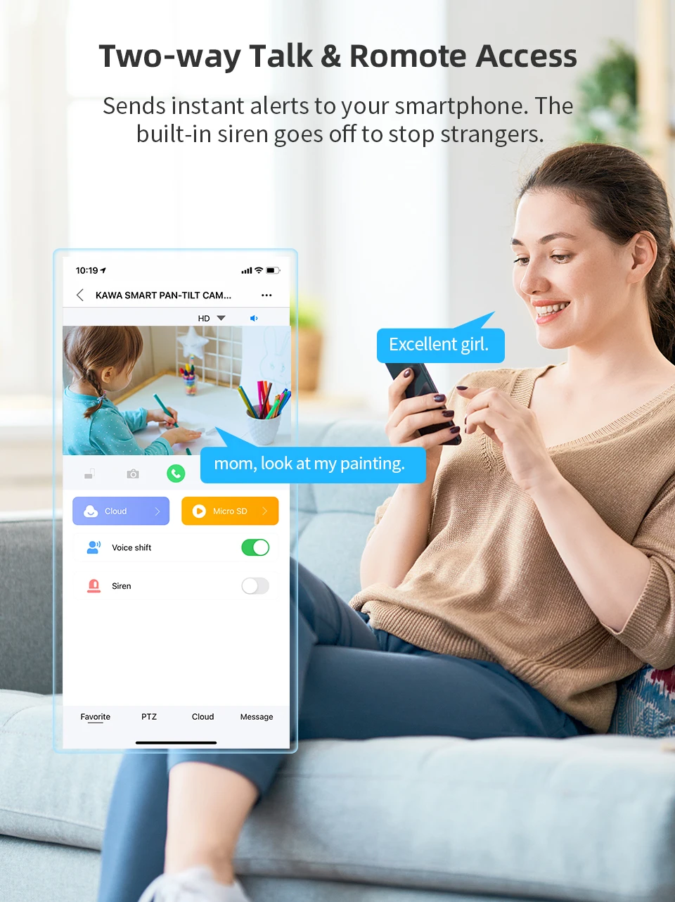 Esta Cámara con micrófono y altavoz mejorados integrados, le permite mantenerse conectado con sus hijos, familia o mascotas en cualquier momento. Incluso puede advertir a los ladrones, visitantes de la pantalla en su puerta. Protege tu familia y tu propiedad de daños solo por la aplicación de tu teléfono. Le da tranquilidad y protección de seguridad las 24 horas.
