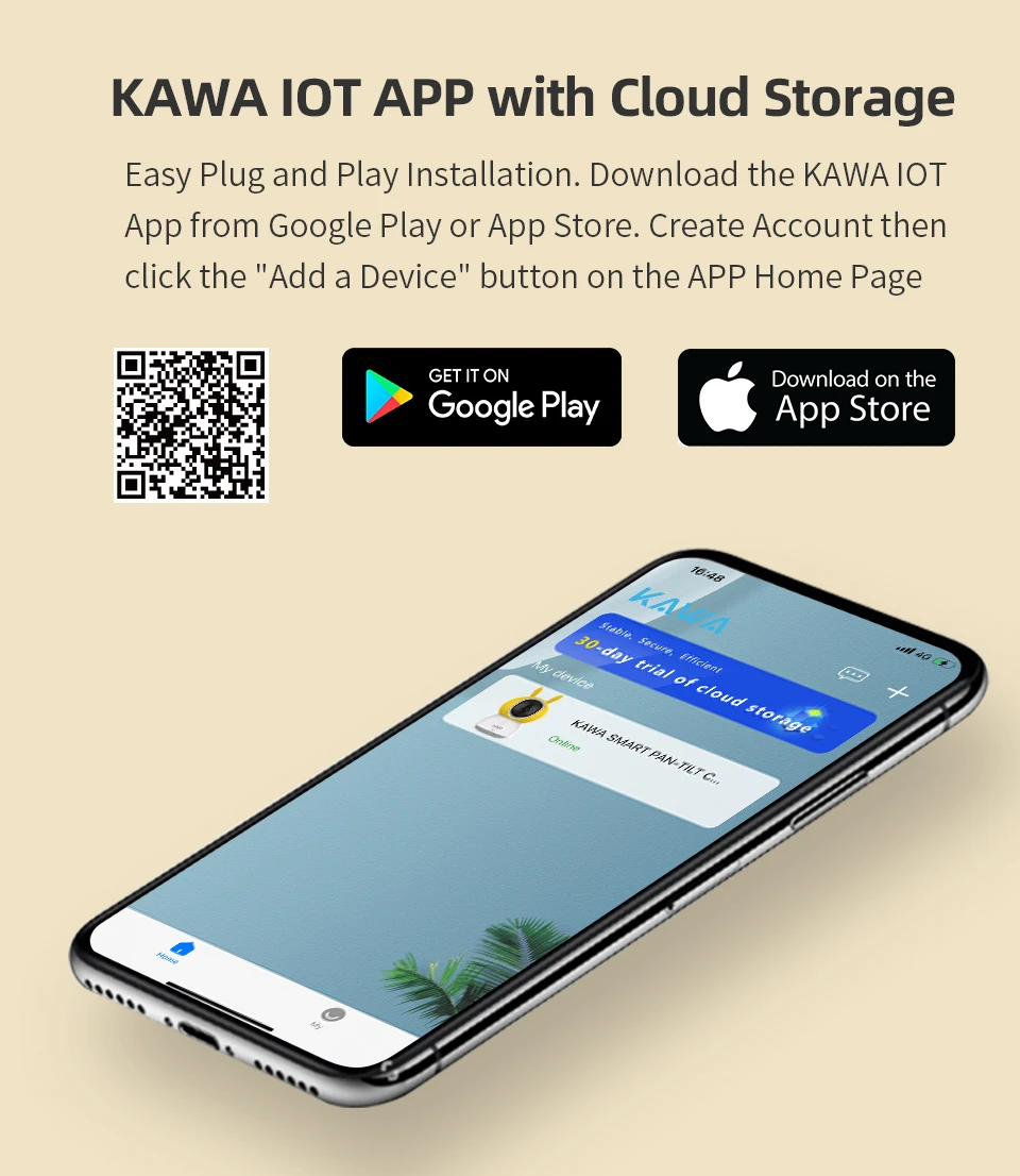 Disfruta de un vídeo claro Full HD en tu teléfono allá donde estés. Admite grabar y almacenar imágenes en la nube o en una tarjeta MicroSD local. La cámara KAWA es compatible con tarjetas Micro SD de hasta 128 GB.