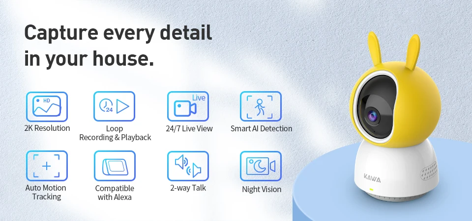 Esta cámara de seguridad interior de 2K ofrece una mayor calidad de vídeo, captura más detalles de vídeo, mejor para identificar intrusos u otras amenazas de seguridad.