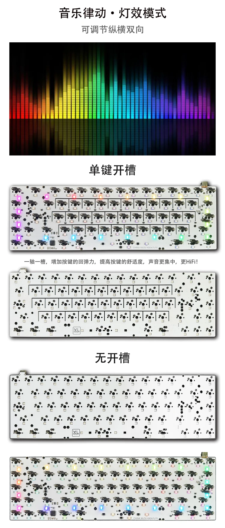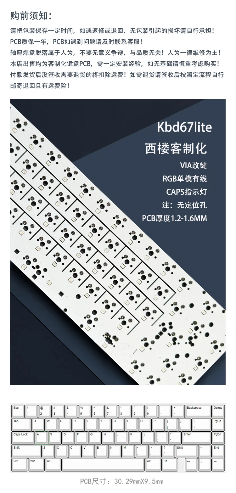 Kbd67lite PCB intercambiable en caliente, columna múltiple, 7 entradas, luz inferior RGB con ranura, llave de cambio 7U/6.25U, accesorios de espesor de 1,6 MM