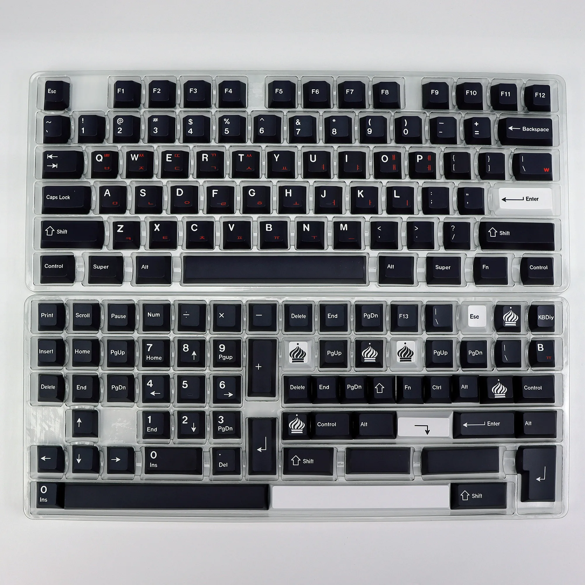Un paquete completo de alfabetos y modificadores ANSI de EE. UU., que incluyen teclas para cubrir varios teclados de 60%, sin teclas, 65%, 75% y de tamaño completo. Hay un SHIFT adicional de 2u y un SHIFT de 2,25u para usuarios de Leopold, barra espaciadora de 2,25U + 2,75U y CONTROL de 1,75u y teclas CAPS LOCK escalonadas, y la configuración clásica de barra espaciadora de 7u. Dependiendo de su diseño, es posible que necesite agregar el kit Extras y/o el kit Bars para una cobertura total. Las teclas ESC/ENTER contrastantes también están disponibles para darle un toque de estilo.