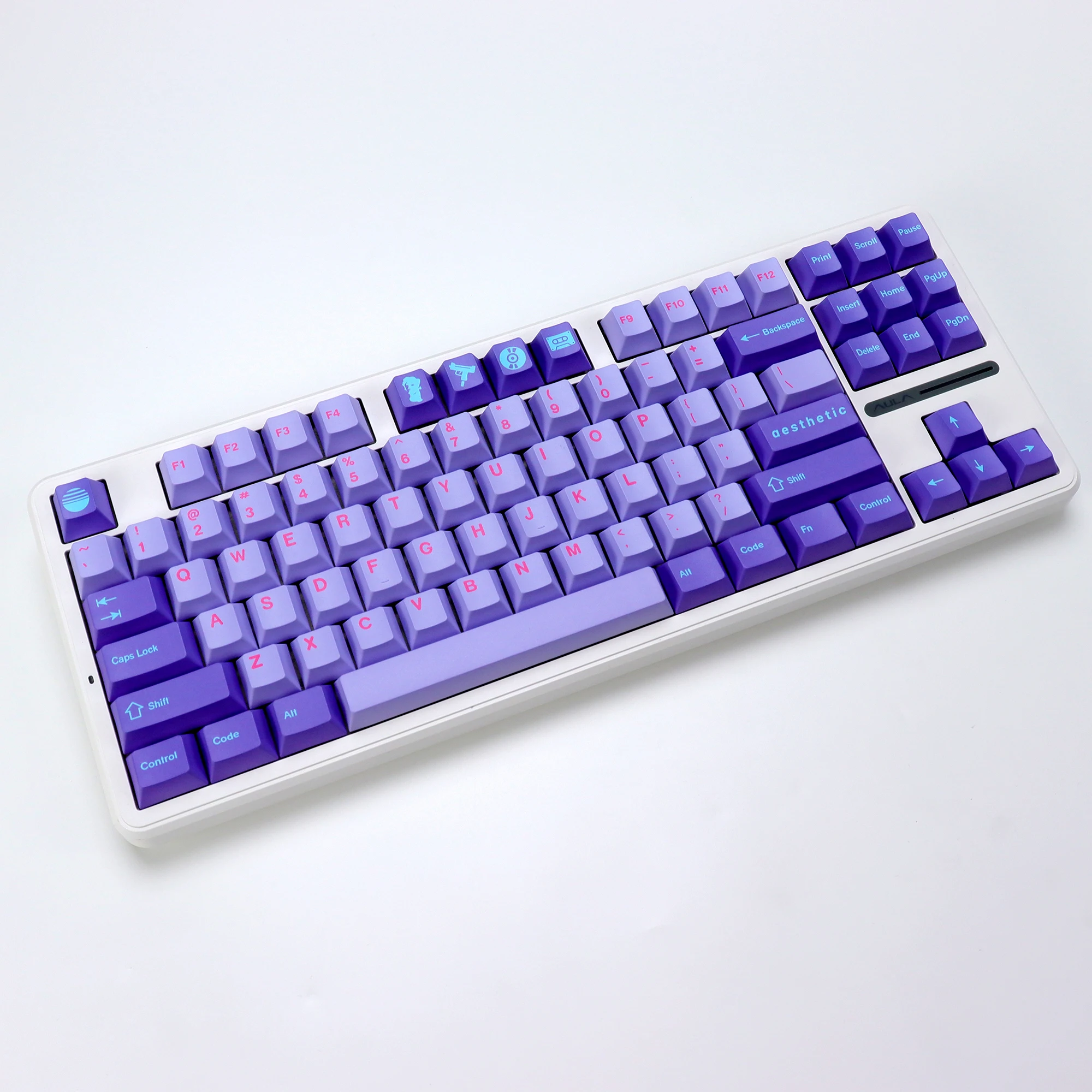 Modelo: KBDiy CloneGMK VaporwaveTecla Idioma: inglés Teclas totales: juego de teclas de 140 teclas Perfil: perfil KBDiy Cherry Material: plástico PBT Método de impresión: sublimación de cinco caras