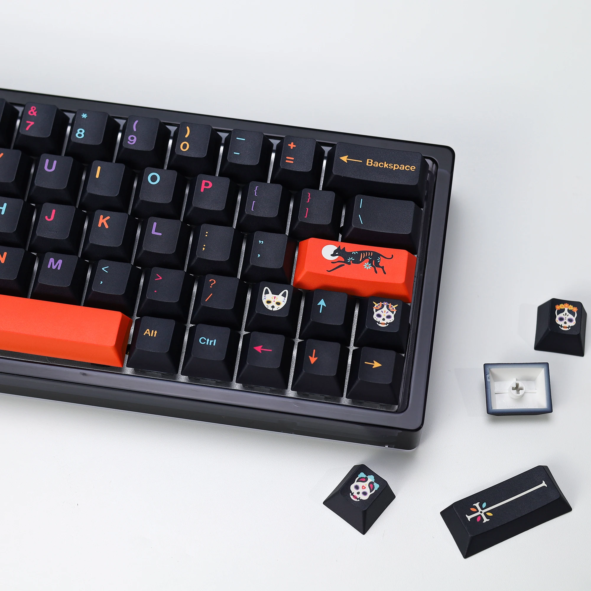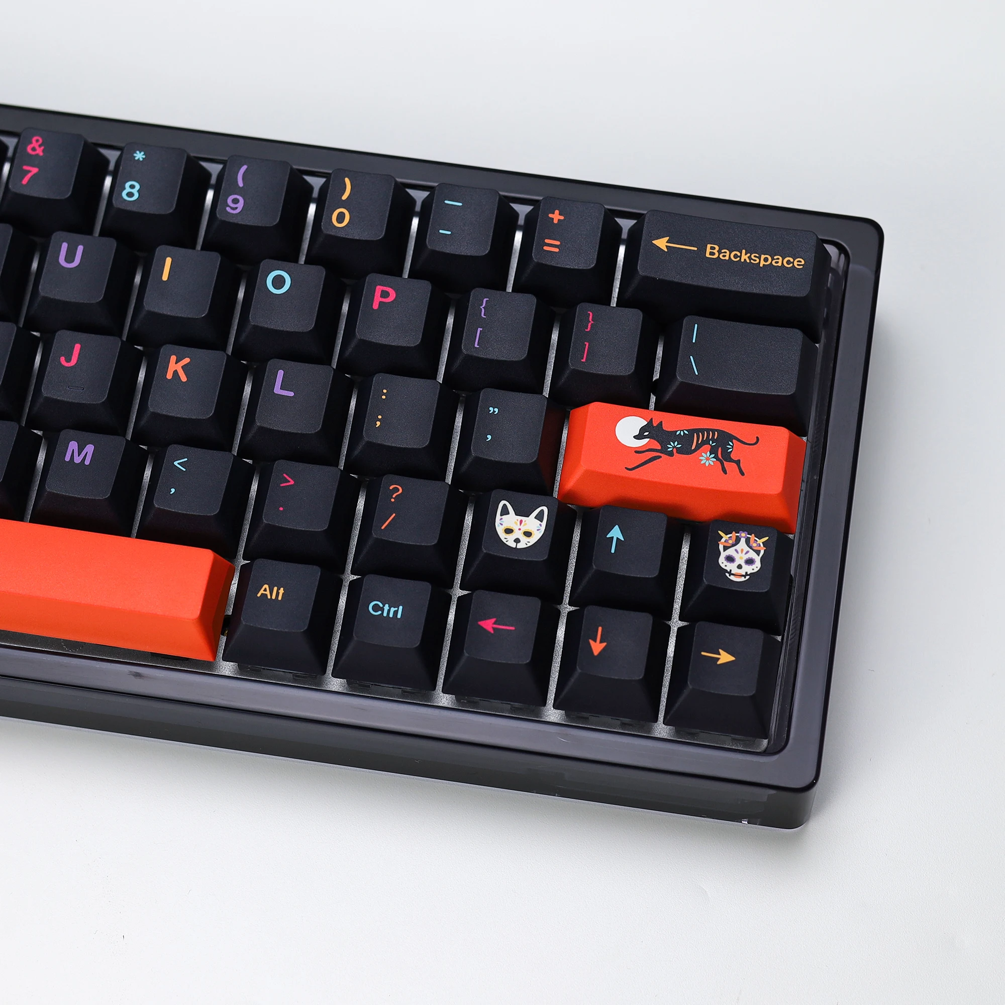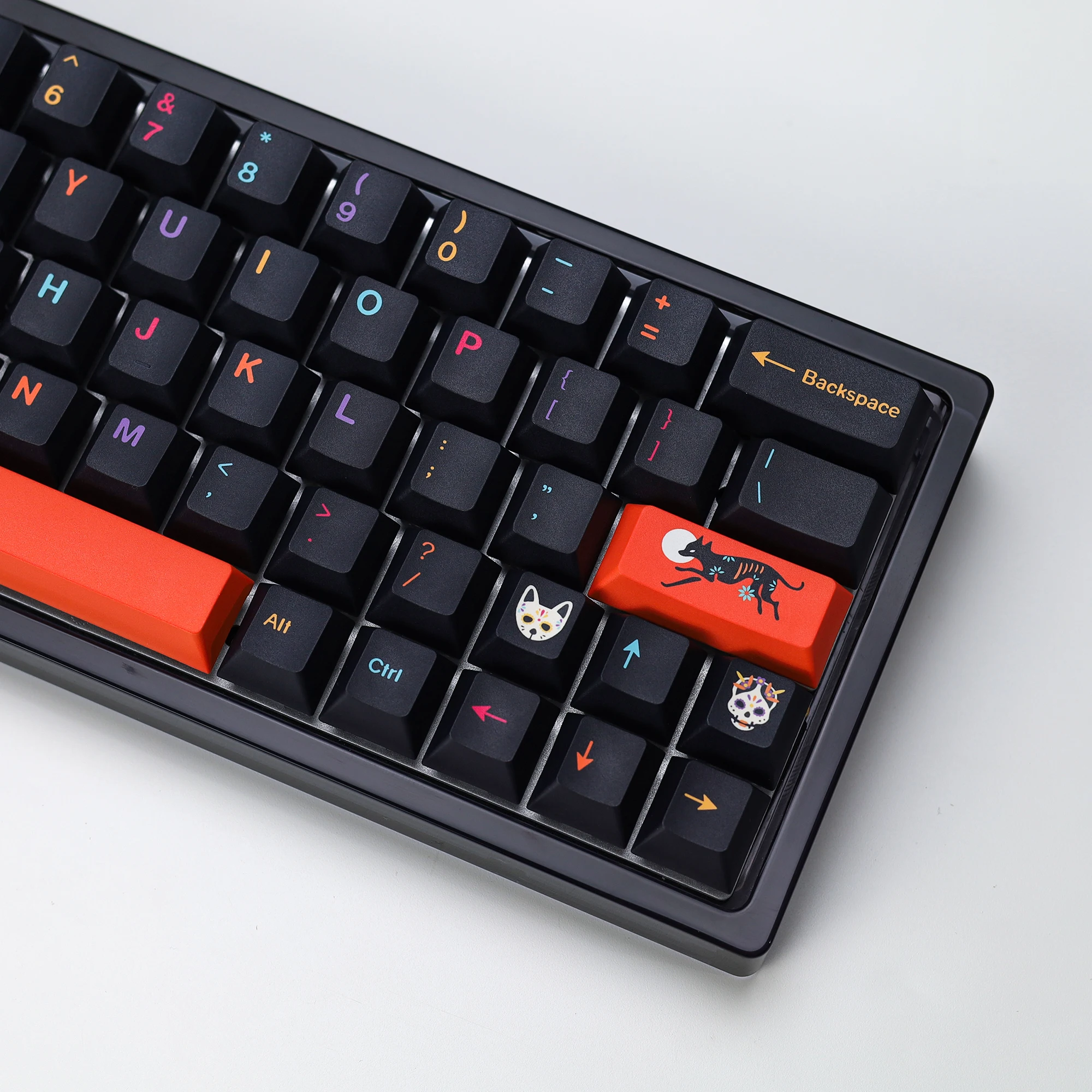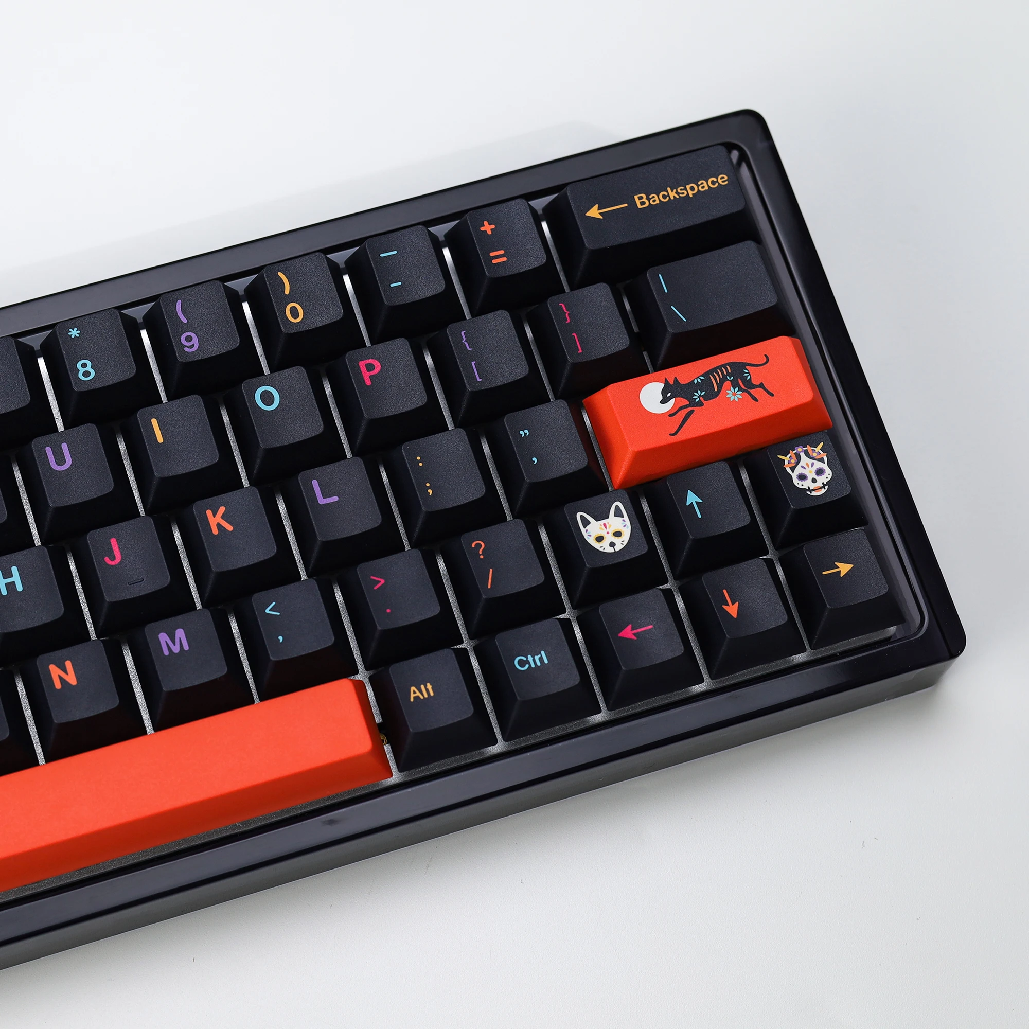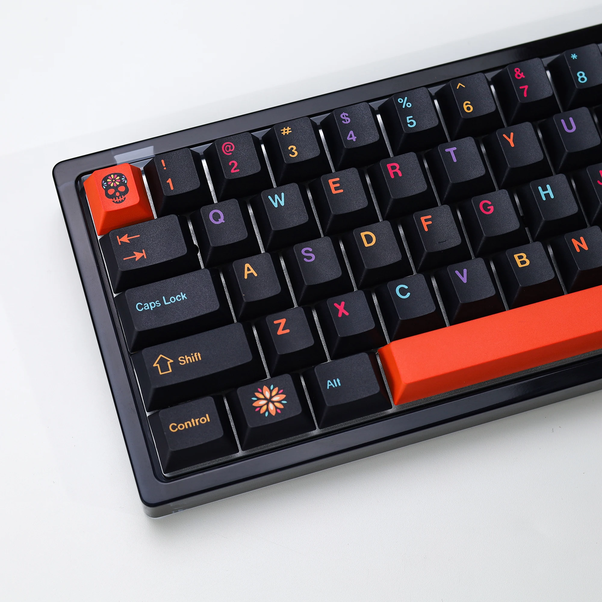 Buena calidad en general. Es una lástima que no haya una tecla ISO Enter naranja y que las teclas con calaveras sean solo R1, R3 y R4. No tener teclas R2 con calaveras hizo que las teclas auxiliares del lado derecho de mi teclado se vieran un poco extrañas. De lo contrario, lo recomendaría.