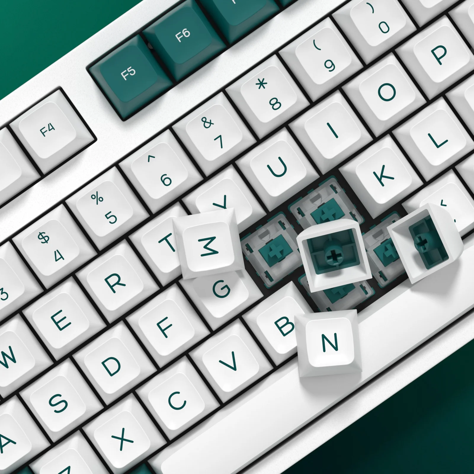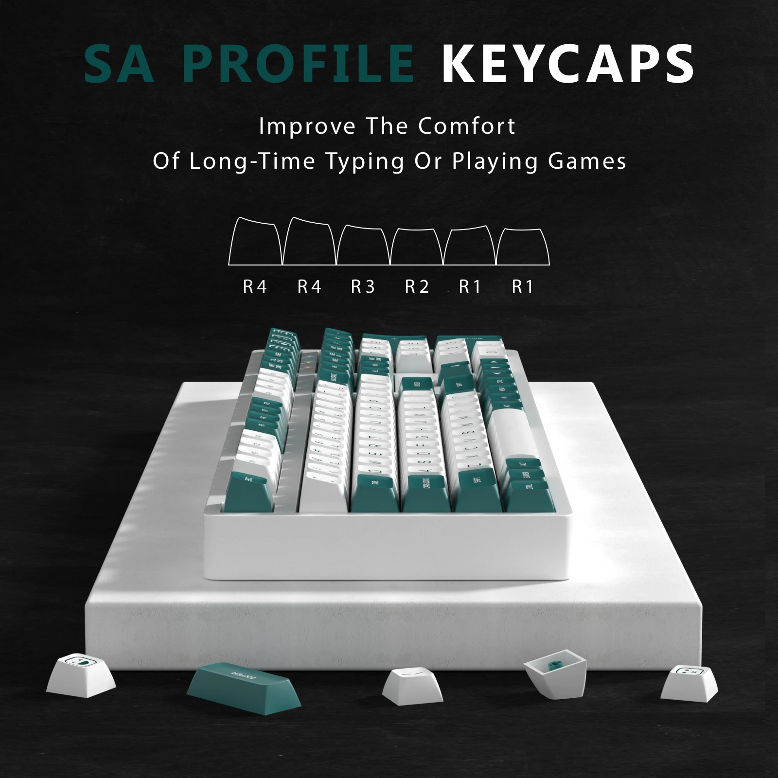 Comprar KBDiy-Juego de teclas PBT SA Profile, teclas verdes y blancas para Gamer, doble disparo ISO para teclados mecánicos para interruptores MX, 142 teclas