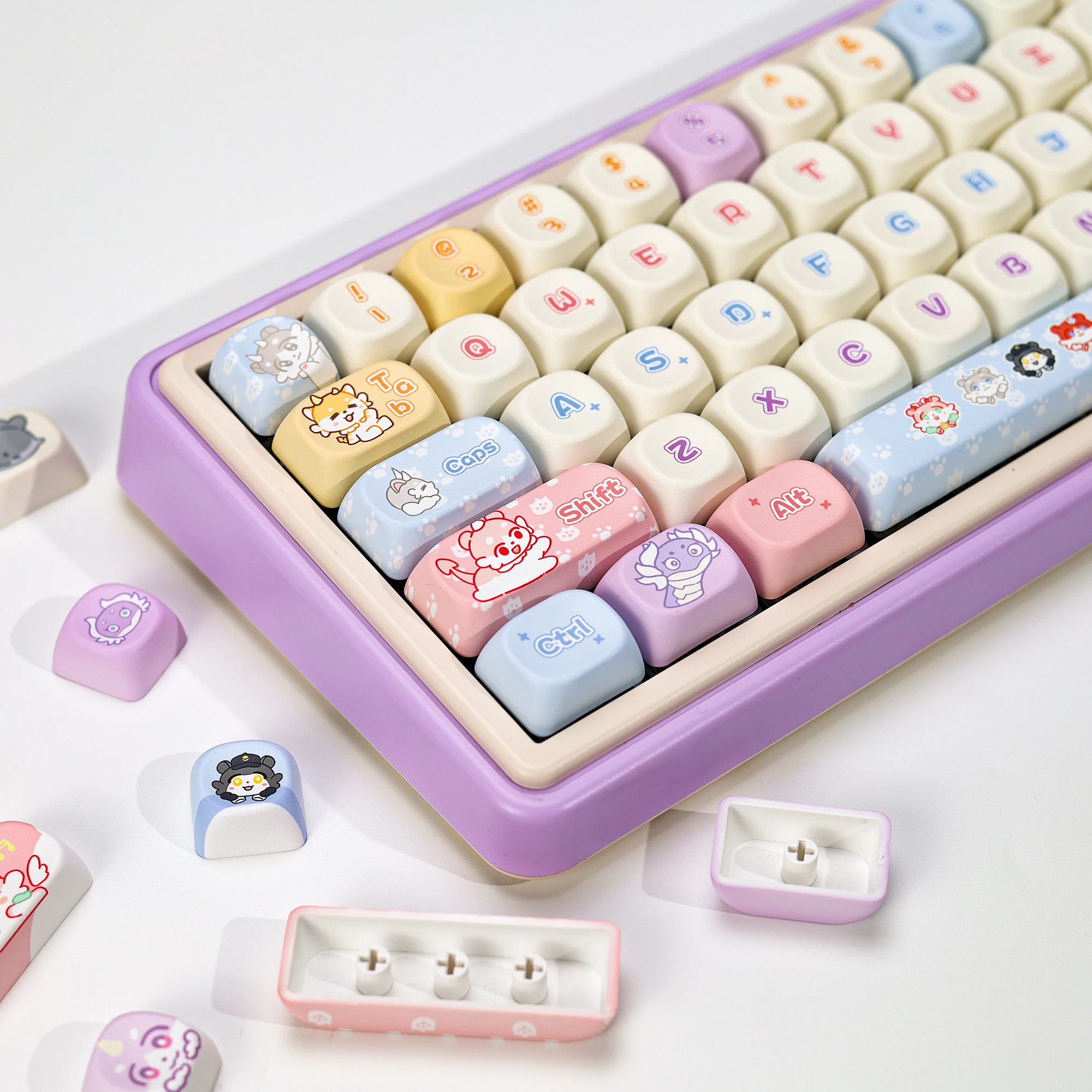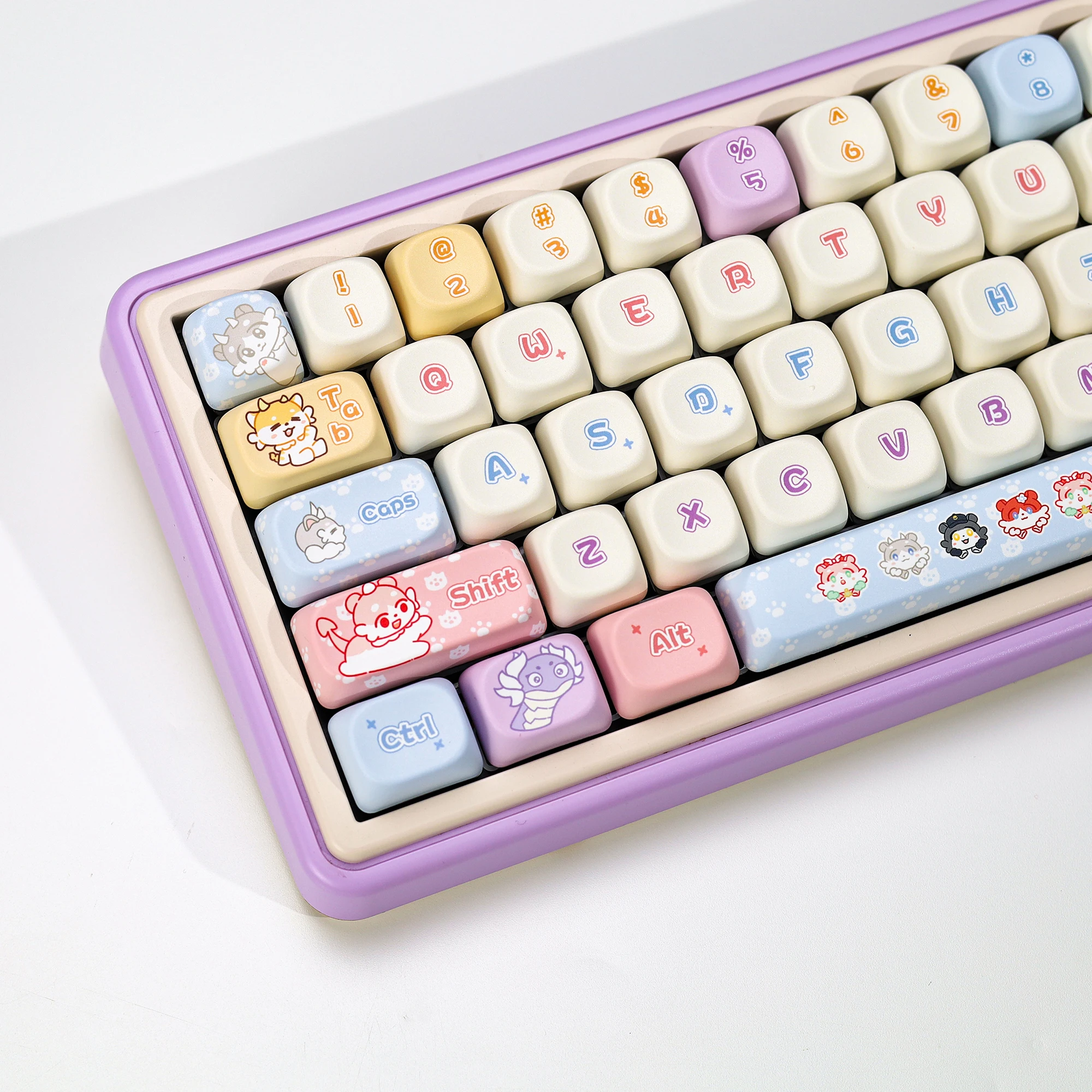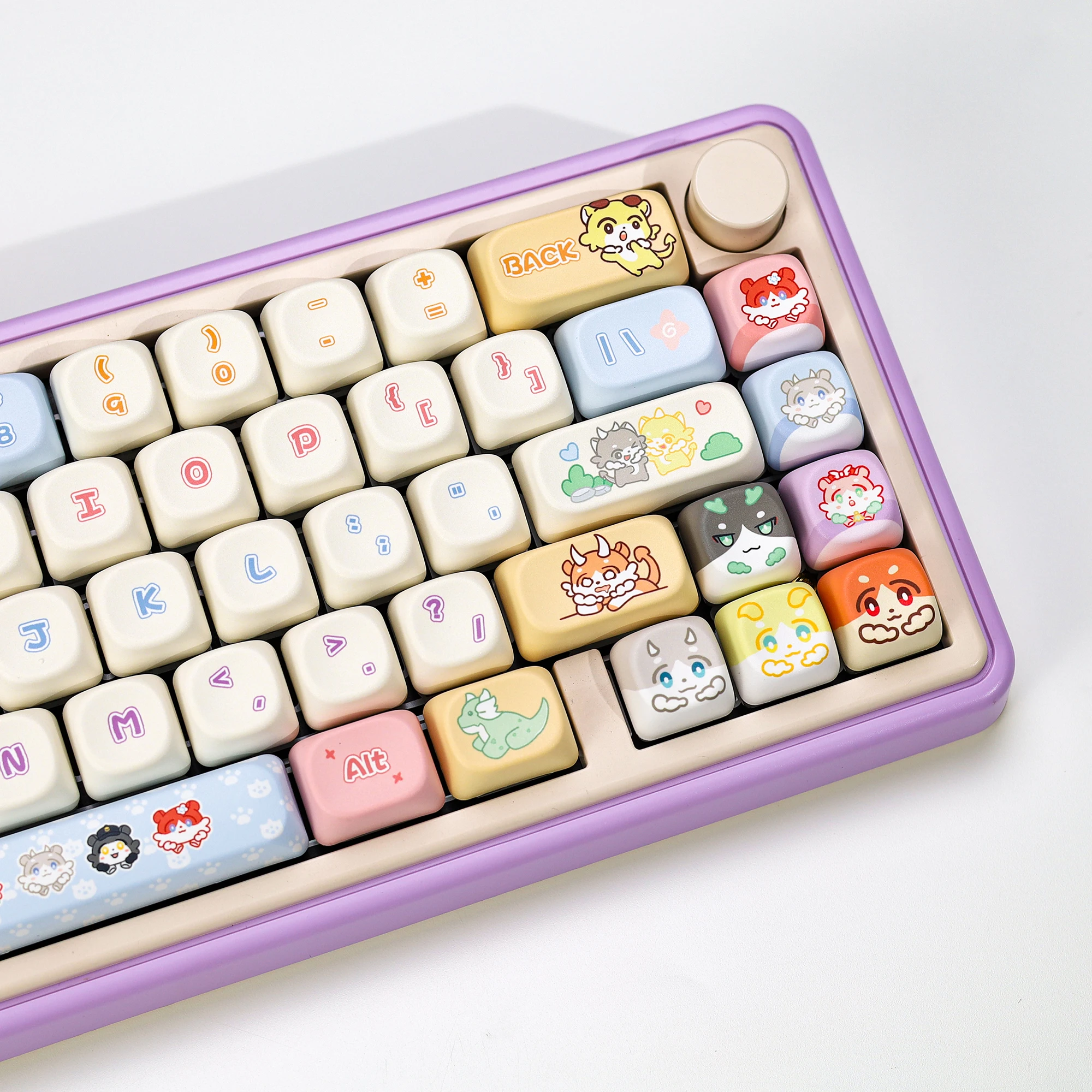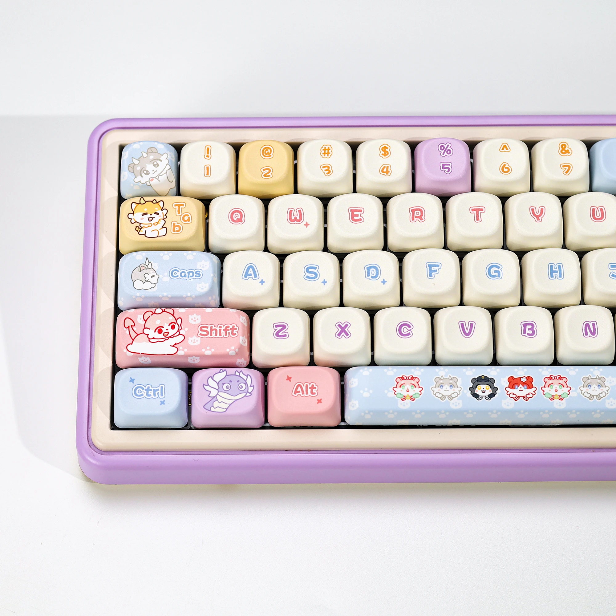 Modelo: KBDiyChimeraTecla Idioma: inglés Teclas totales: juego de teclas de 133 teclas Perfil: perfil KBDiy KOA Material: plástico PBT Método de impresión: sublimación de cinco caras
