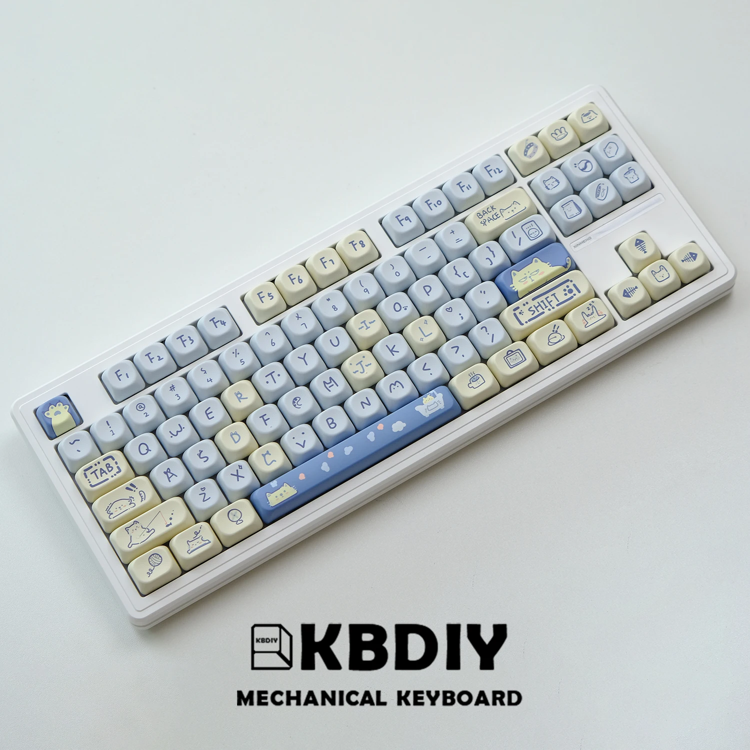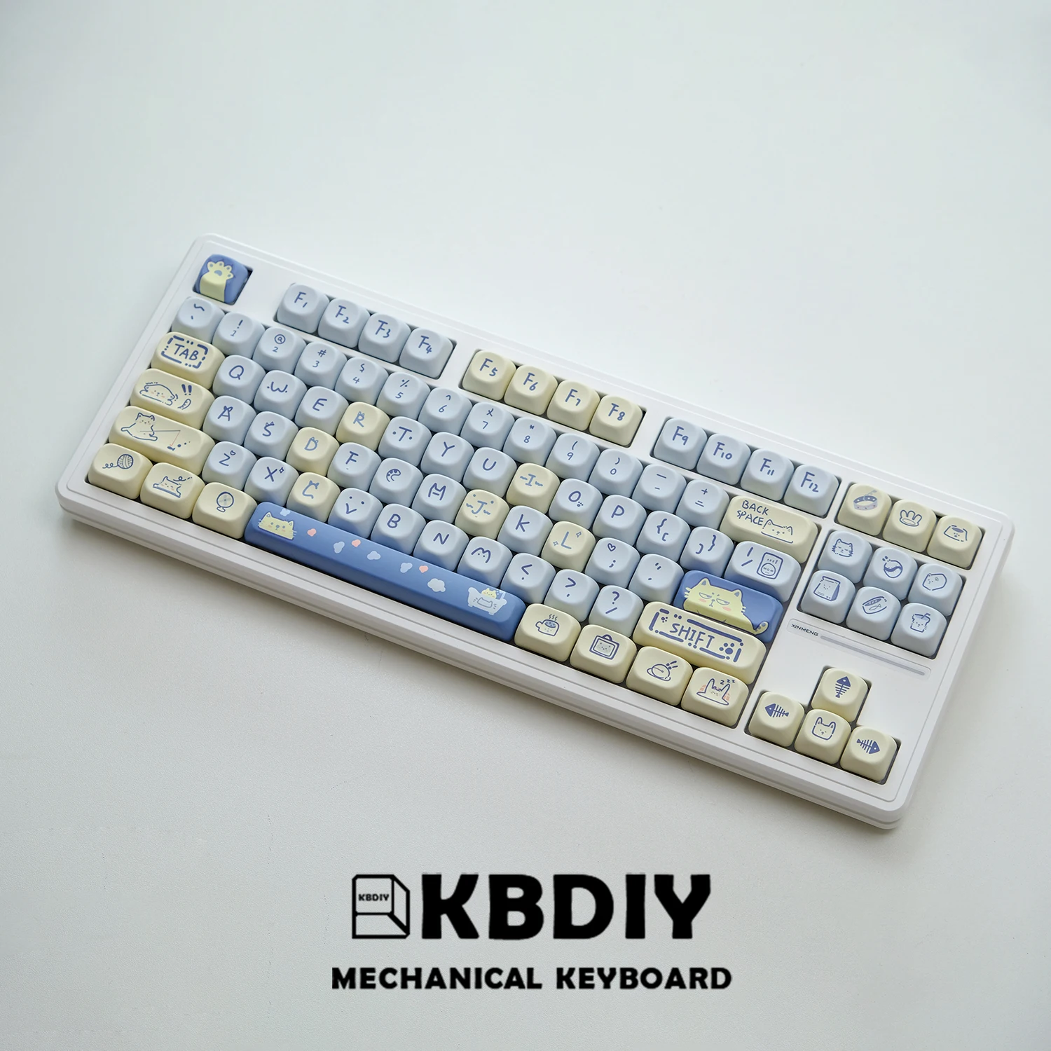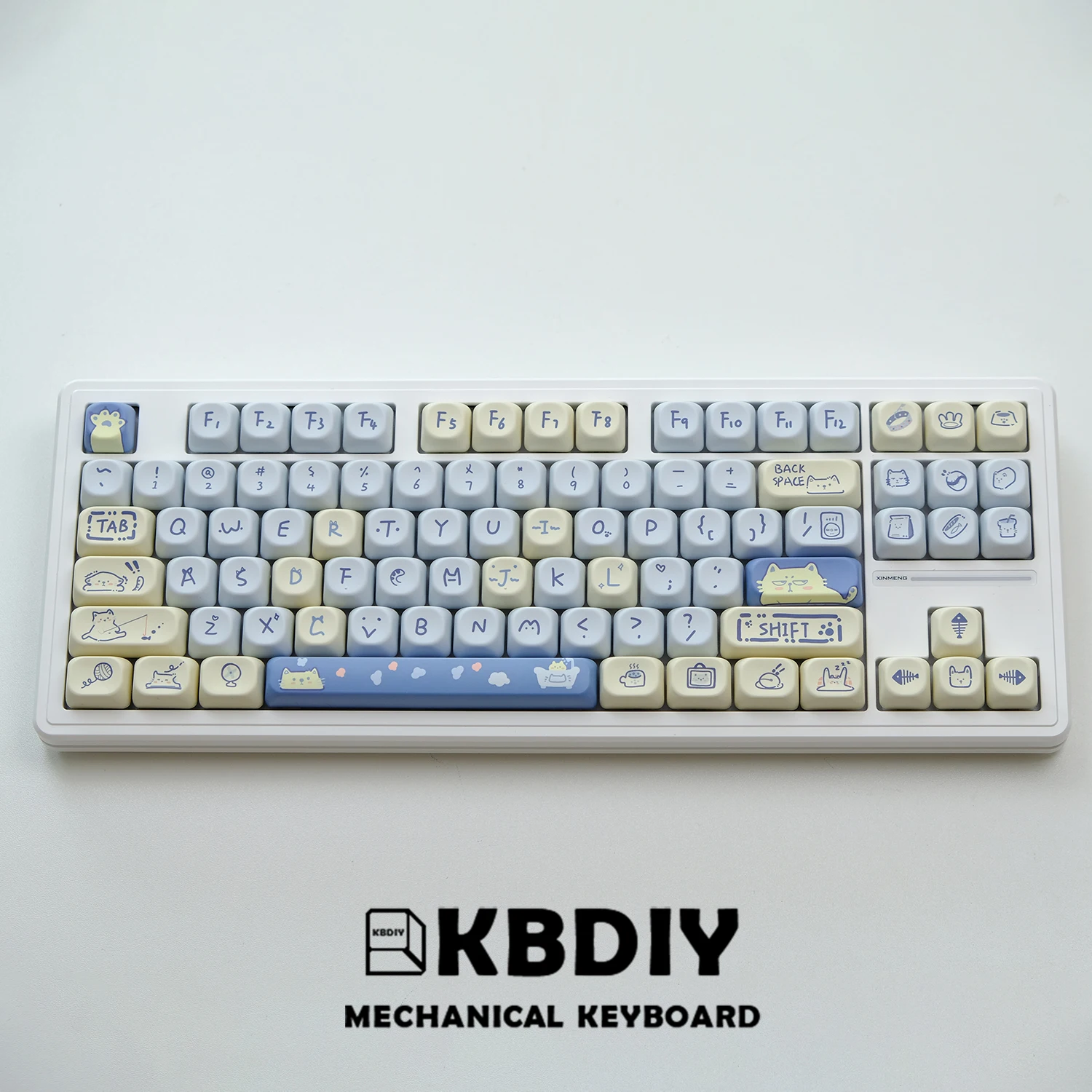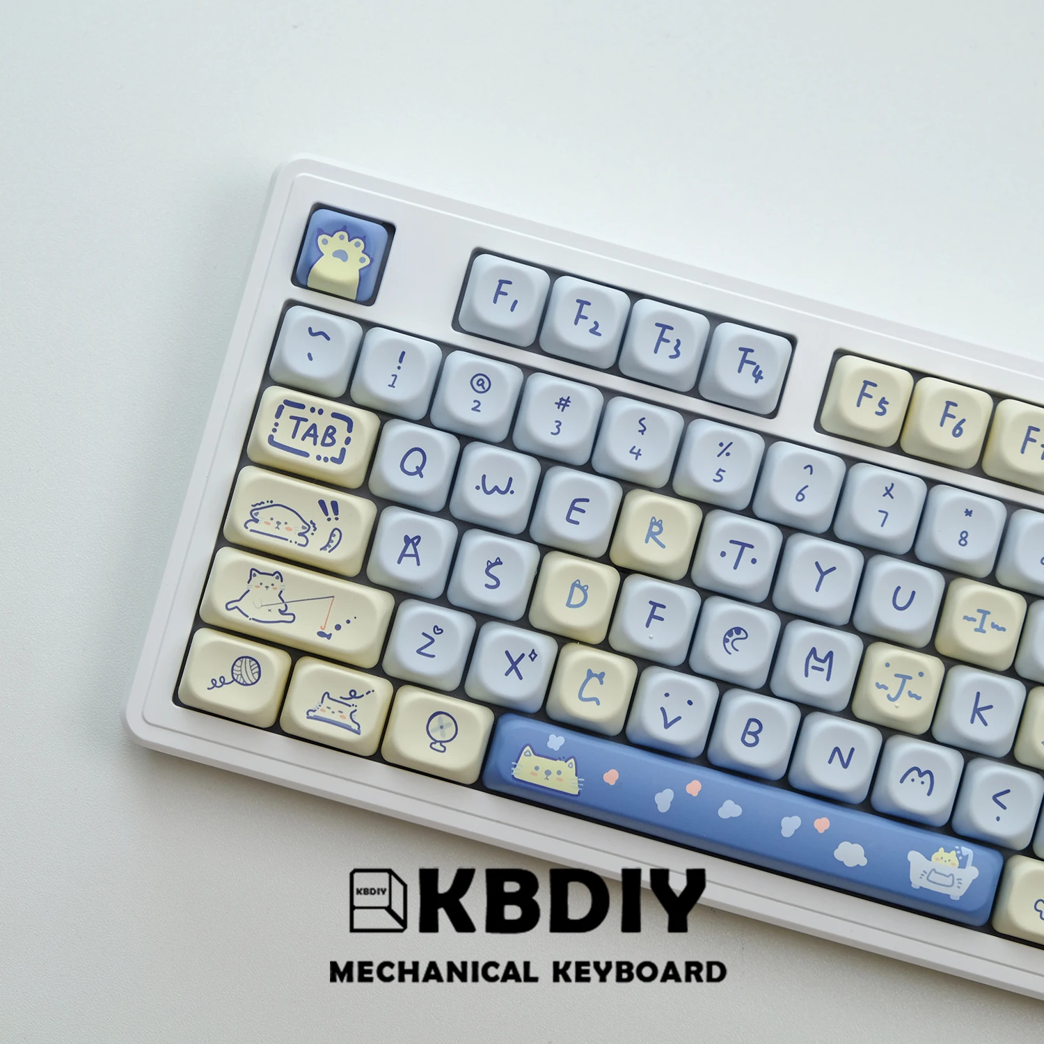 Comprar KBDiy-teclas PBT Blue Meow de 141 teclas, teclas personalizadas con perfil KOA, bonitas teclas para teclado mecánico ISO 7U, teclas para interruptores MX GMK67