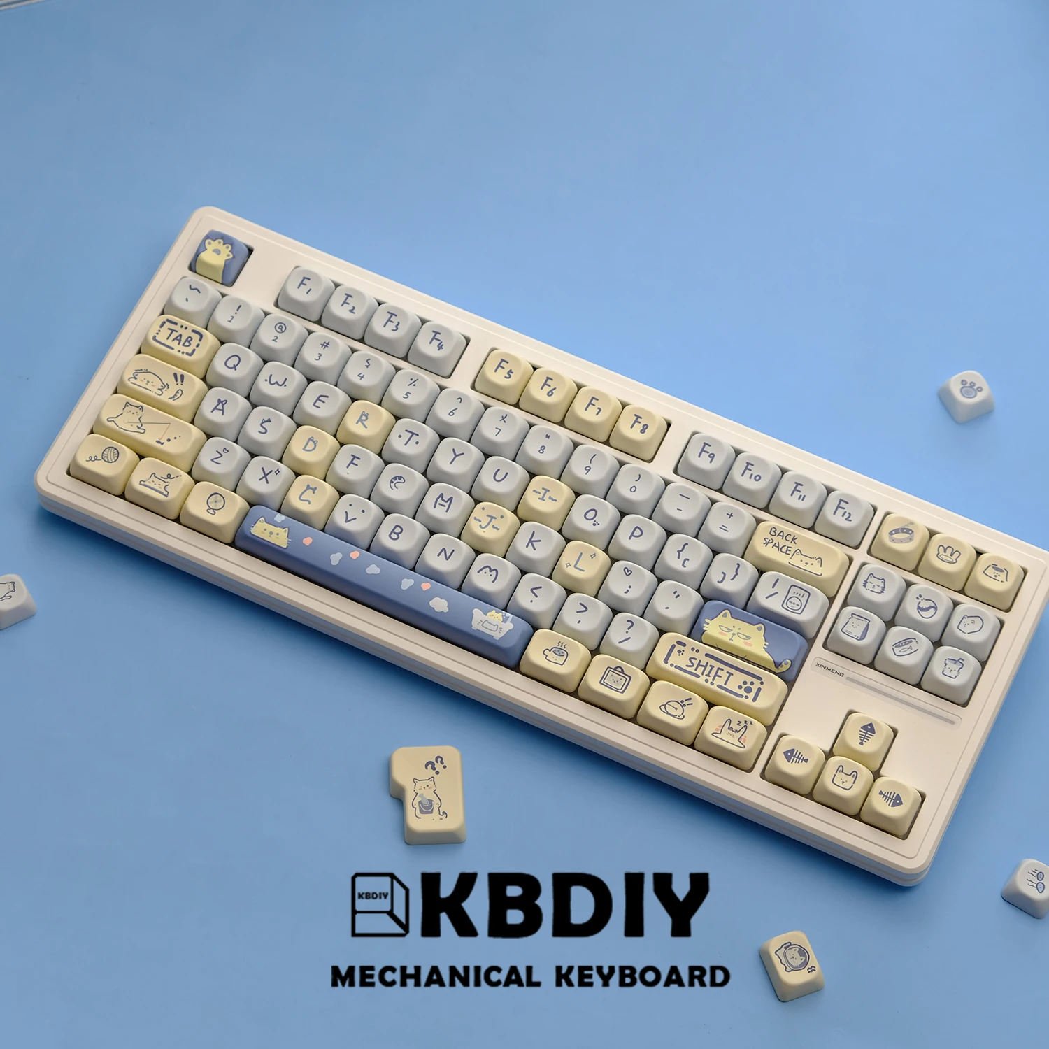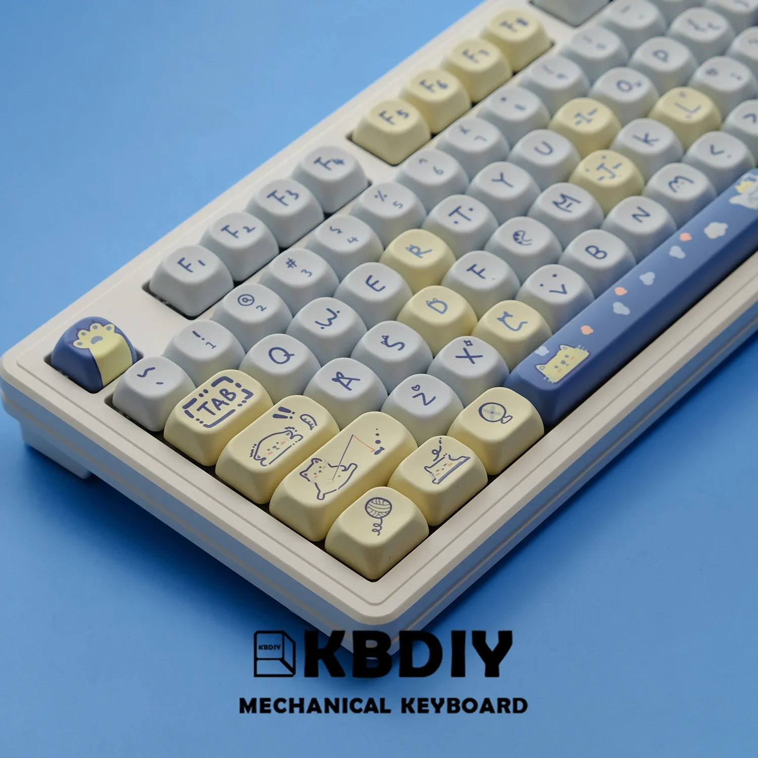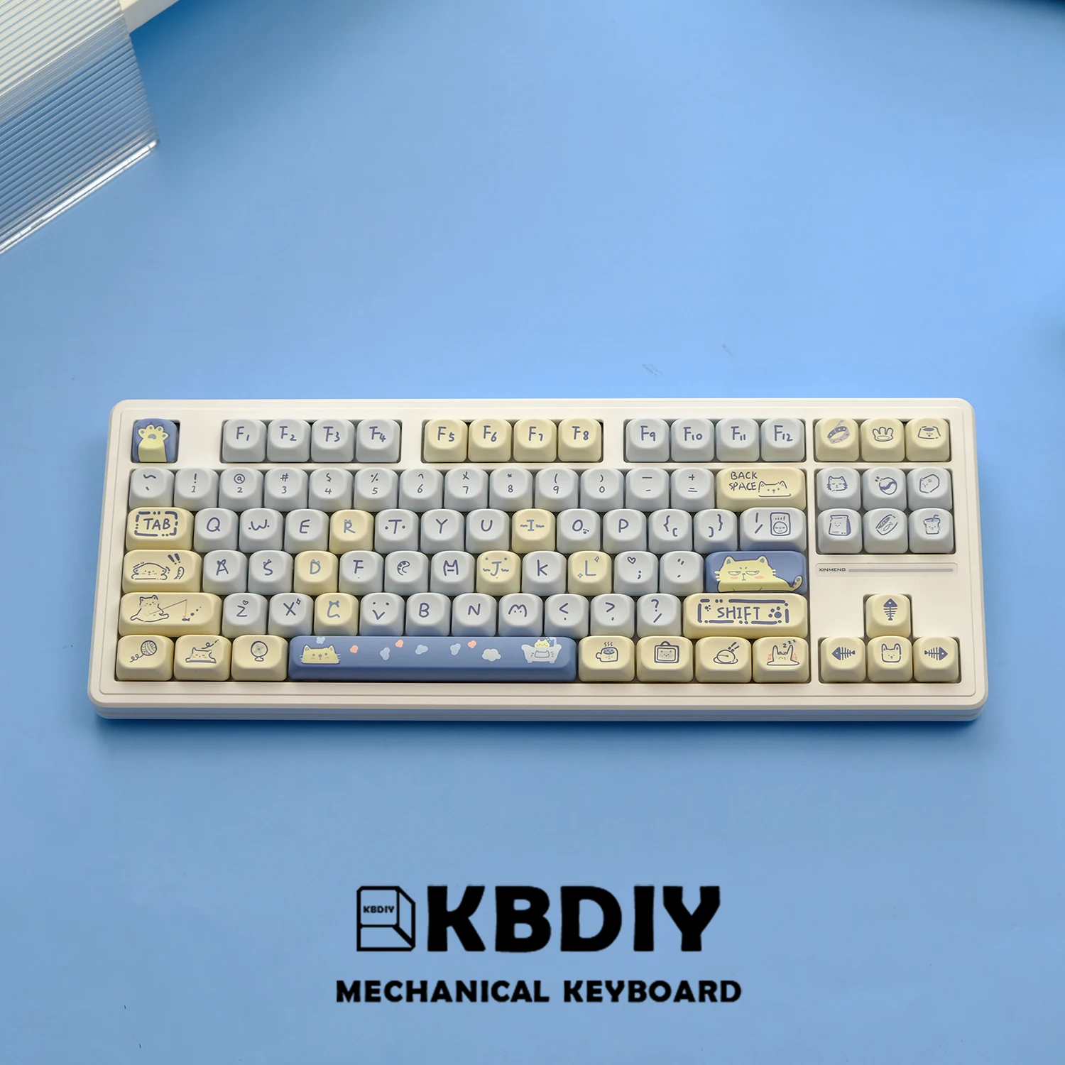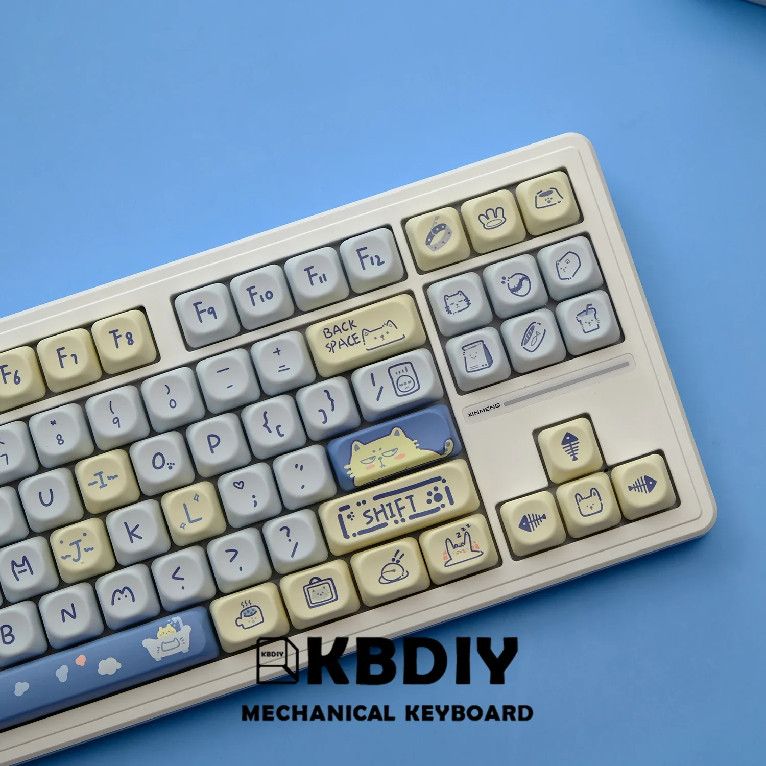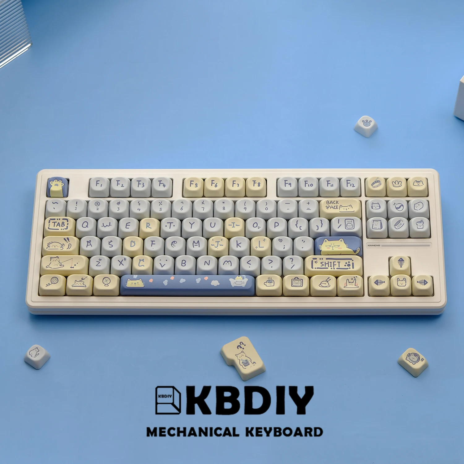 Comprar KBDiy-teclas PBT Blue Meow de 141 teclas, teclas personalizadas con perfil KOA, bonitas teclas para teclado mecánico ISO 7U, teclas para interruptores MX GMK67