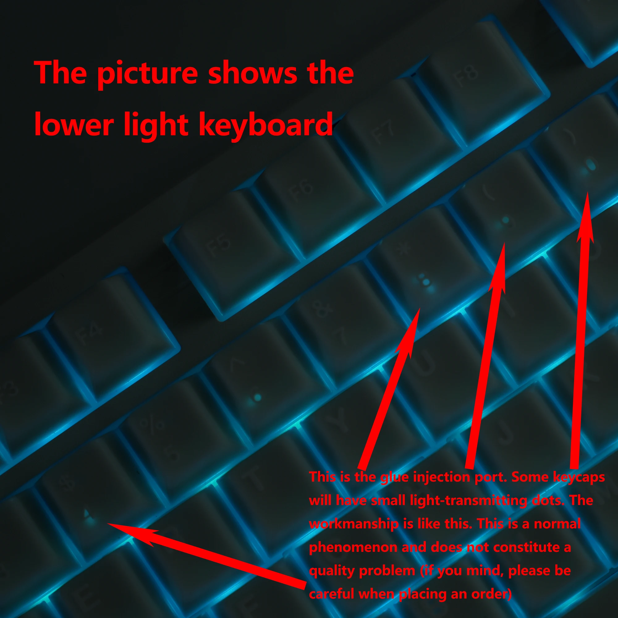 This is the glue injection port. Some keycaps will have small light-transmitting dots. The workmanship is like this. This is a normal phenomenon and does not constitute a quality problem (if you mind, please be careful when placing an order)
