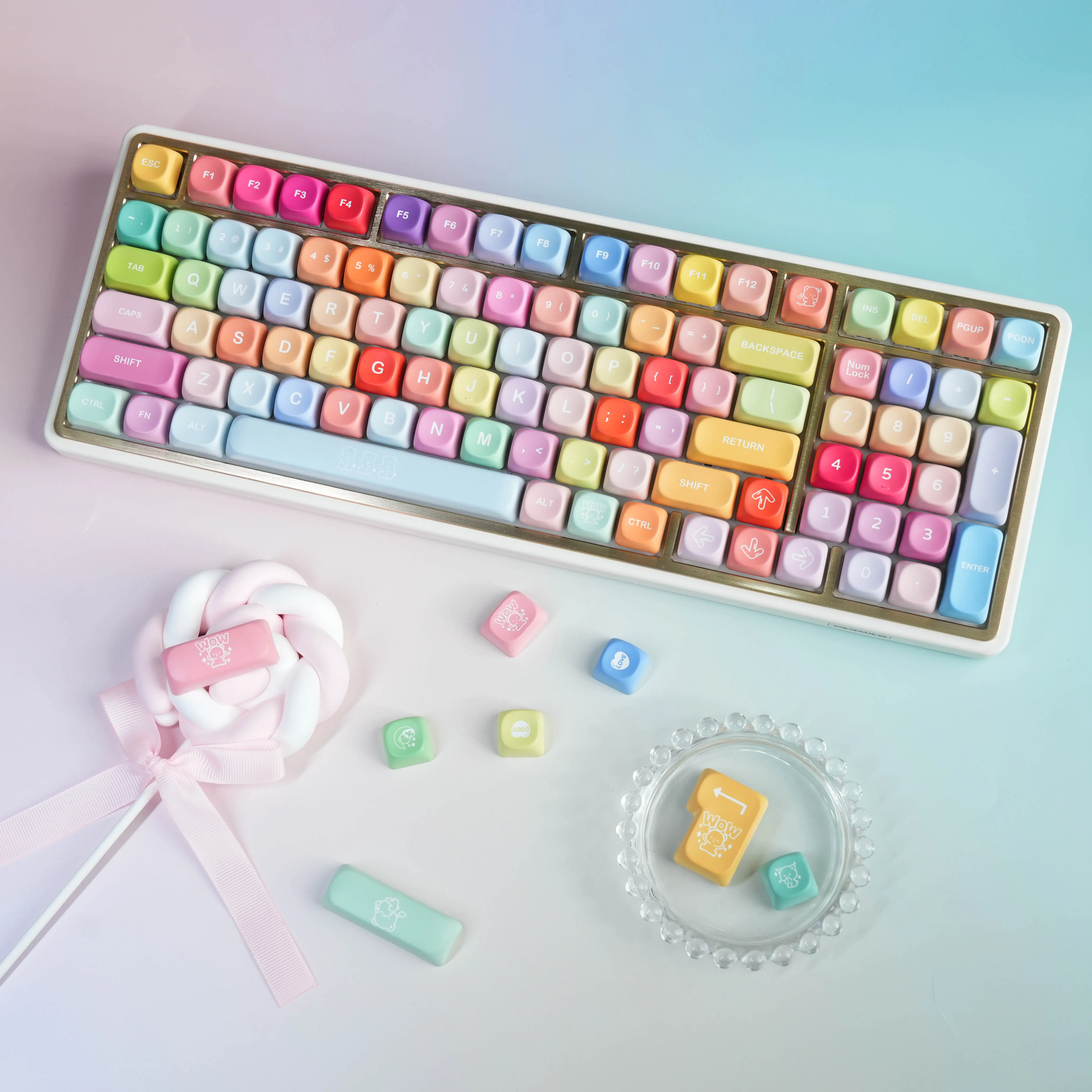 Se adapta a la mayoría de los teclados mecánicos con diseño ANSI de 60/61/68/84/87/100/104/108 teclas.