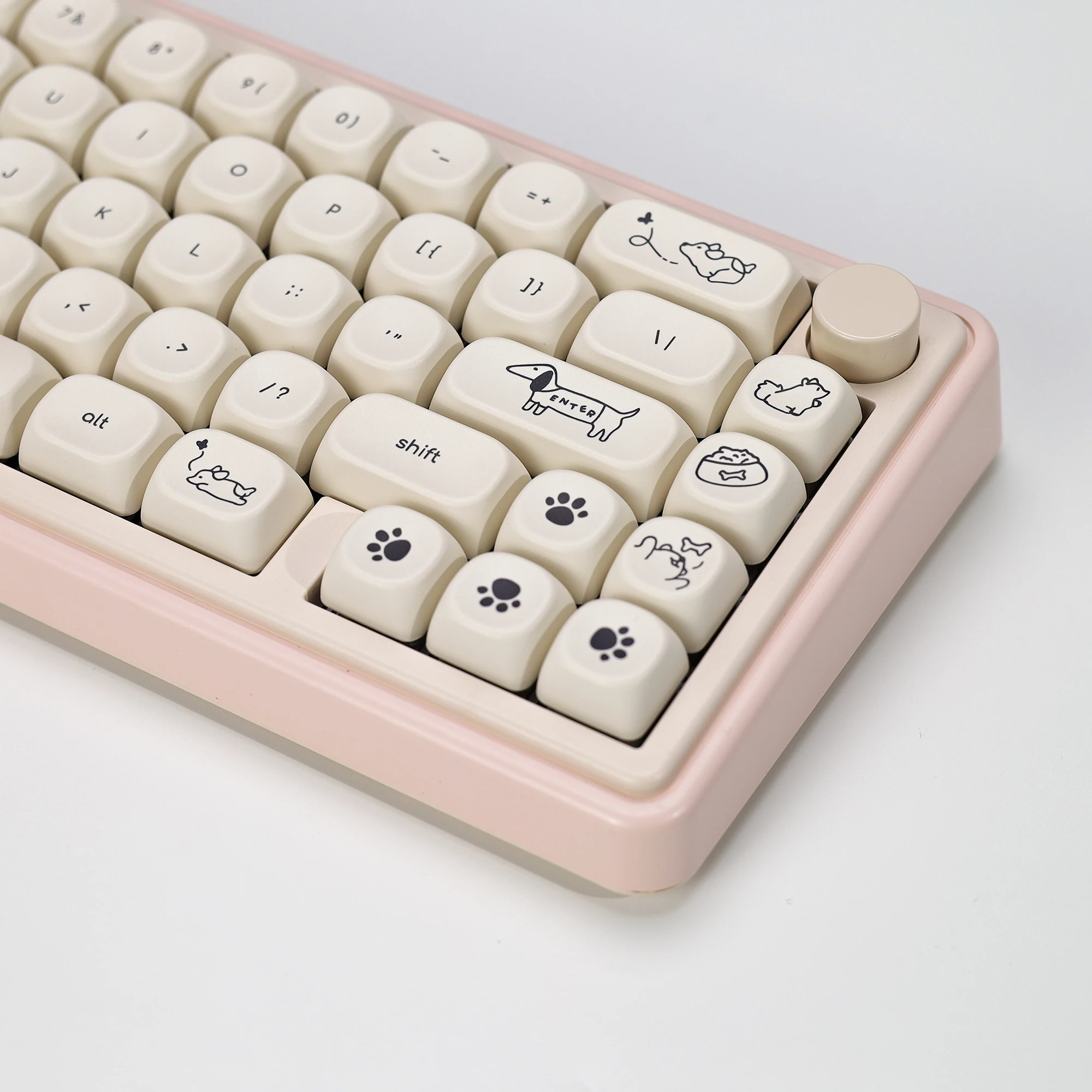 Modelo: KBDiyPerro de leche blanco minimalistaTecla Idioma: inglés Teclas totales: juego de teclas de 137 teclas Perfil: perfil KBDiy KOA Material: plástico PBT Método de impresión: sublimación