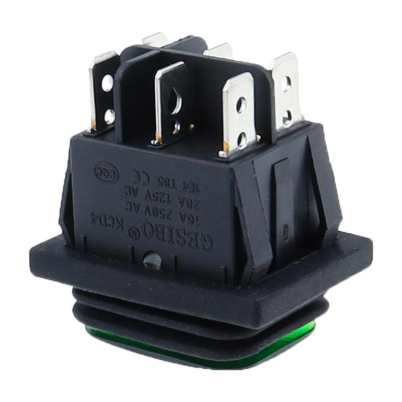 Interruptor basculante resistente al agua 16A 250VAC 30x22 de alta resistencia, interruptor basculante de 6 pines DPDT ON OFF ON 12V 220V rojo verde LED