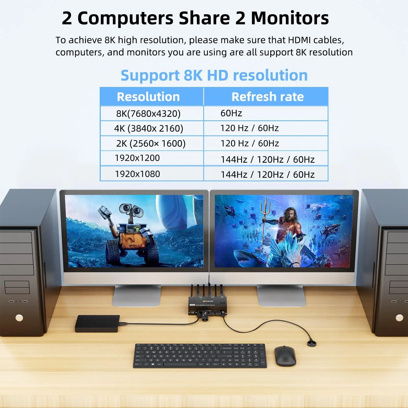 Conmutador 8K KVM HDMI para 2 ordenadores 2 monitores