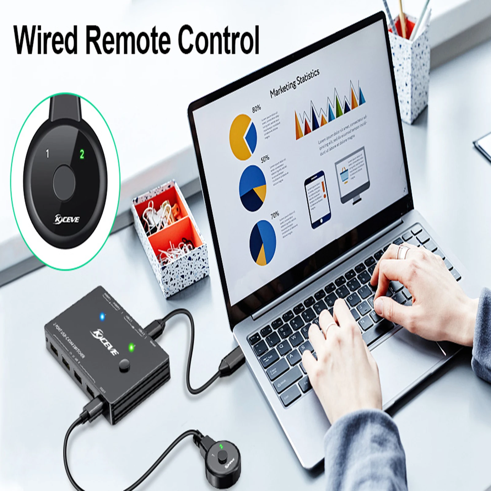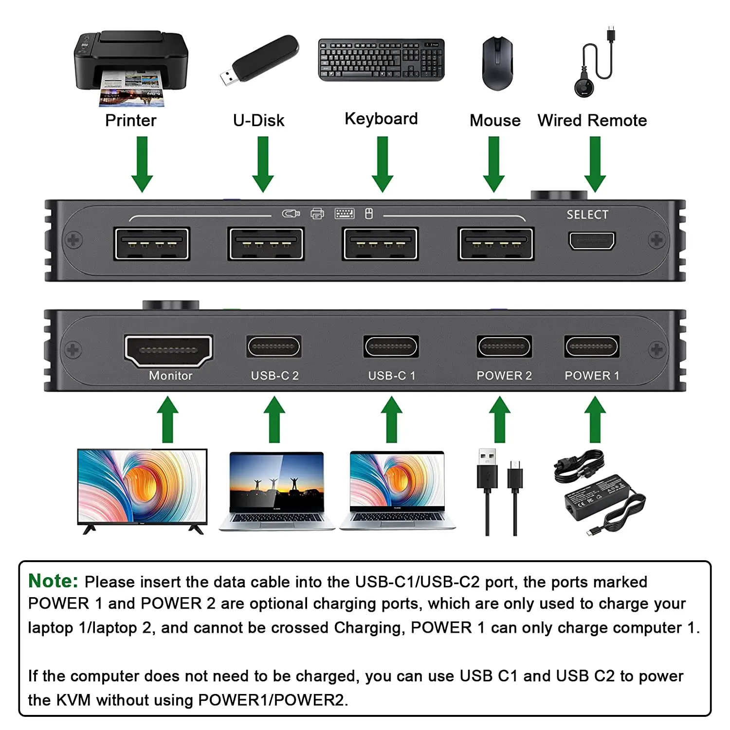 Comprar KCEVE-interruptor KVM USB tipo C, 2 en 1, 4K, HDMI, compatible con carga PD para 2 ordenadores, compartir 1 Monitor y 4 dispositivos USB