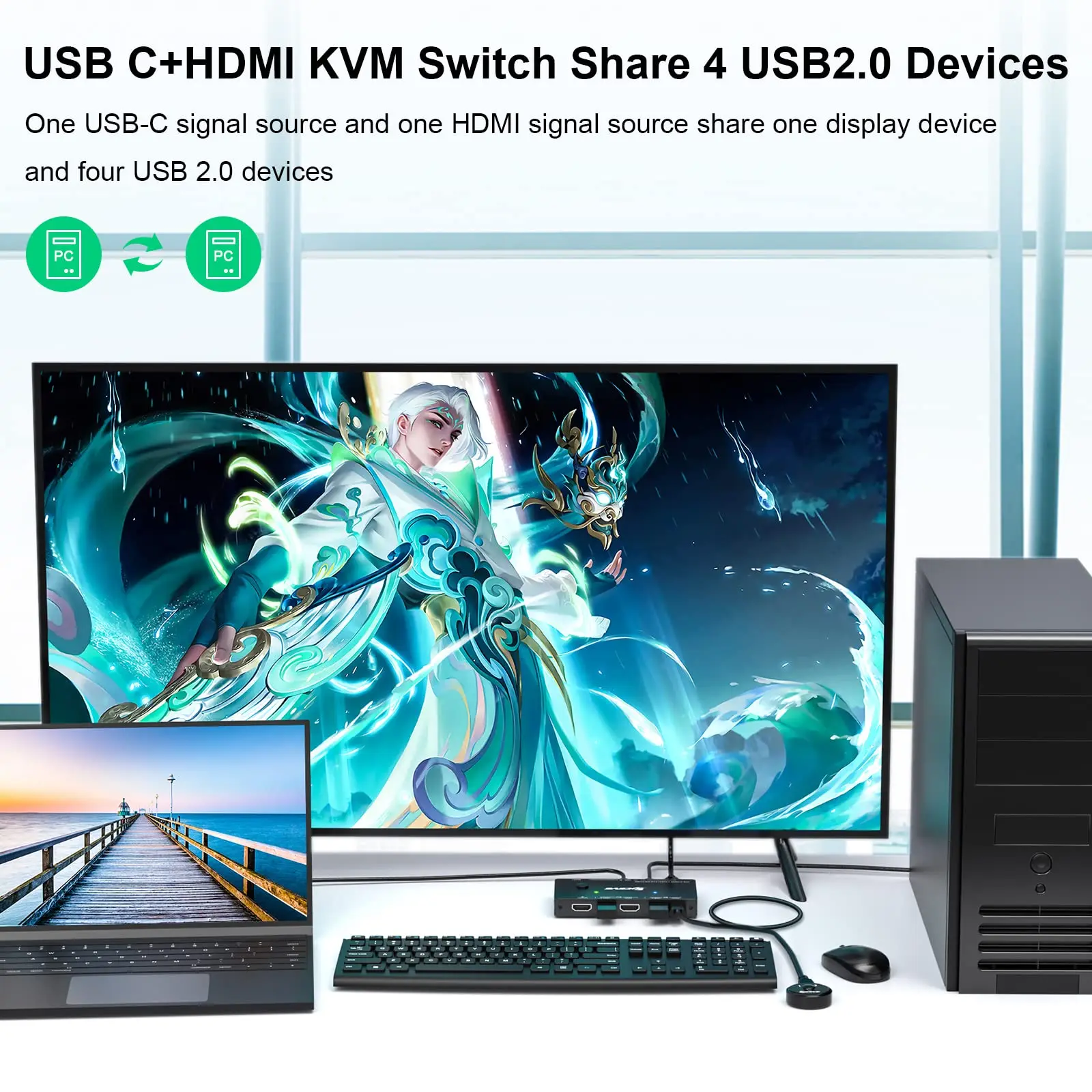 -Adaptive EDID. The equipment has excellent image processing and transmission capabilities, make the output signal smoother and more stable, It's a reliable and high performance USB-C HDMI KVM switch.