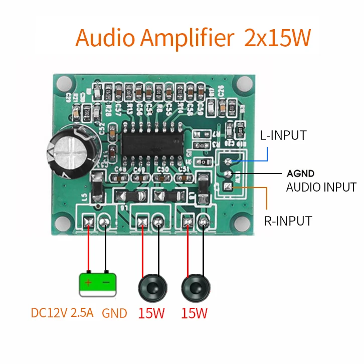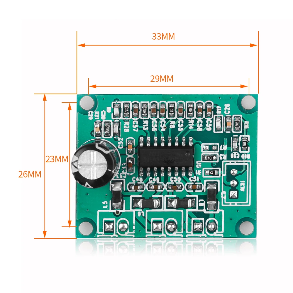 Modelo: Placa amplificadora de potencia JQ-501Potencia: 2*15WModelo de chip amplificador de potencia: CS8655E ZhipuxinAmplificador de potencia: 2*15WVoltaje: voltaje de fuente de alimentación 12 V, corriente de entrada mínima 2,5 A altavoz de 4 ohmiosTamaño del tablero: 26*33MMTamaño de fijación del orificio del tornillo: 23*29MMAmplificador de 2x30W:Nombre del producto: Placa amplificadora de potencia de audio digital