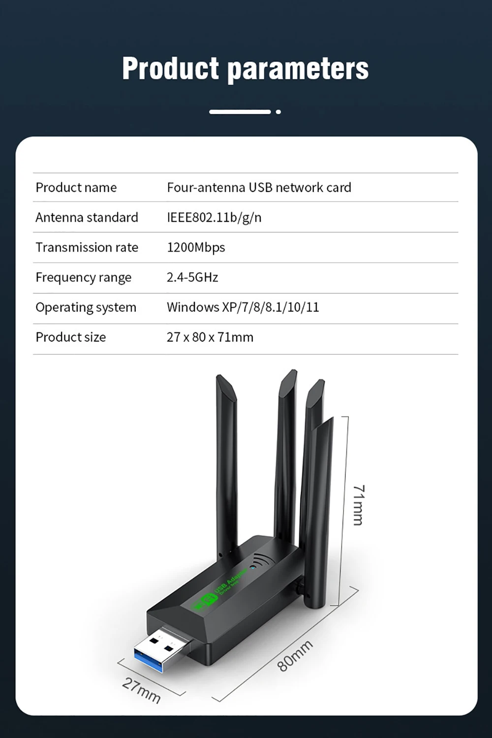 1 juego de tarjeta de red USB de cuatro antenas de 1200 M
